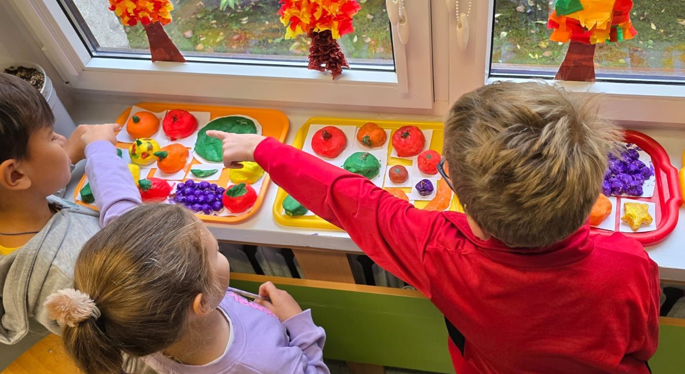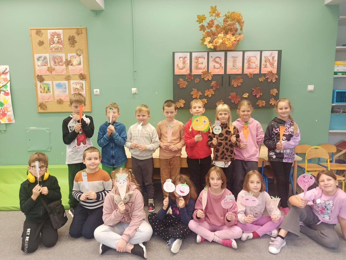 W naszej świetlicy szkolnej dzieci miały okazję poznać różne warzywa typowe dla jesieni. Wzięły udział w krótkim quizie o tym, co rośnie w ogrodzie o tej porze roku. Następnie tworzyły kolorowe prace plastyczne, używając ziemniaków jako stempli.