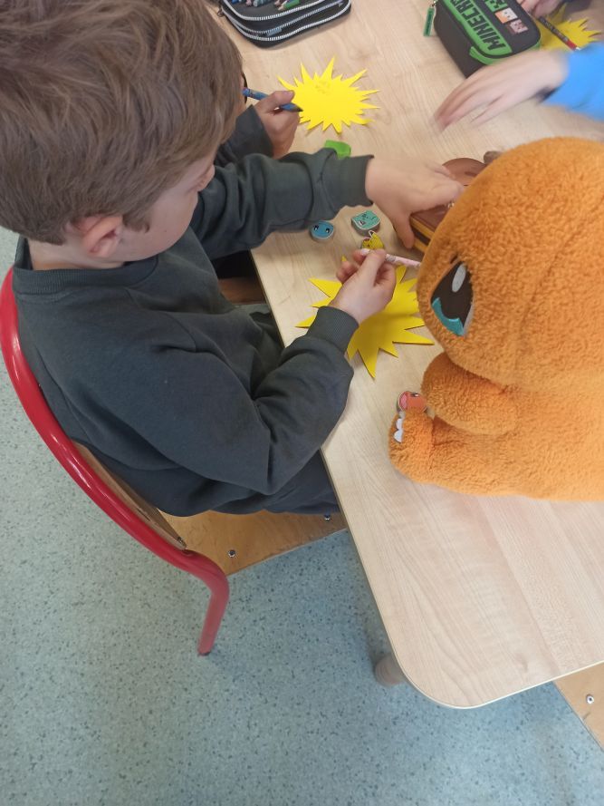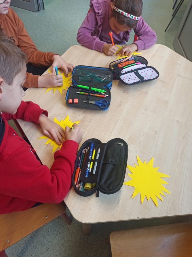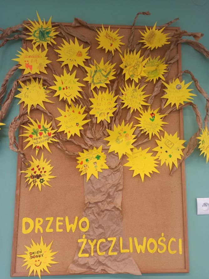 W świetlicy dzieci wspólnie tworzyły ,,Drzewo Życzliwości”. Na jego gałązkach zawisły słoneczka, na których znalazły się pozdrowienia, miłe słowa oraz kolorowe rysunki dla kolegów i koleżanek.