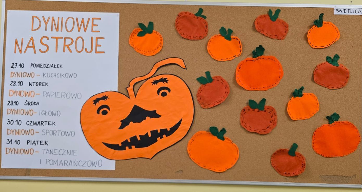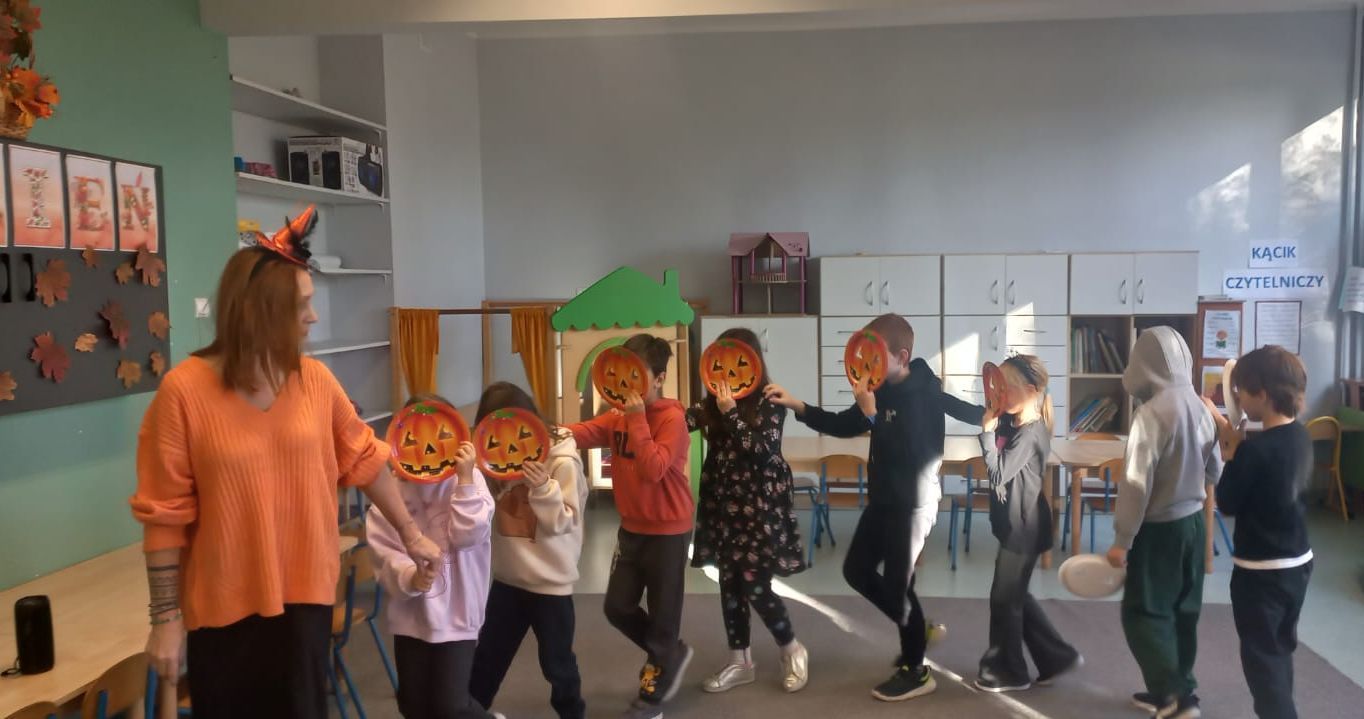 W piątek 31 października, na zakończenie cyklu „Dyniowe nastroje”, odbyły się zajęcia „Dyniowo- tanecznie i pomarańczowo”, podczas których dzieci uczestniczyły w wesołych tańcach i zabawach.