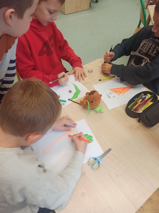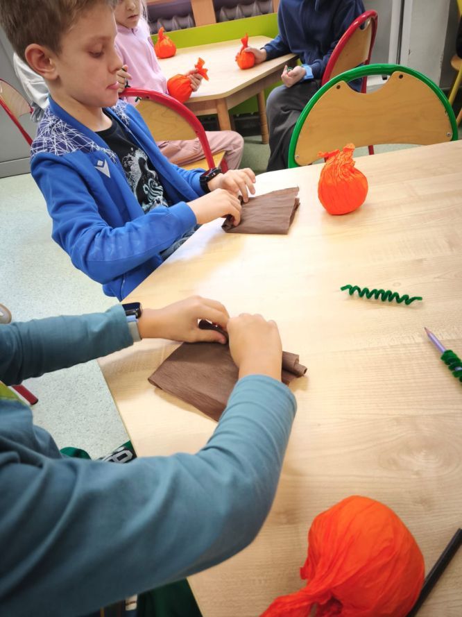 W świetlicy regularnie odbywają się zajęcia o tematyce jesiennej. Tym razem motywem przewodnim były kasztany. Dzieci tworzyły własne „kasztaniaki – bujaki”, czyli postacie wykonane z papieru, inspirowane jesienną aurą. Zajęcia były okazją do twórczej pracy i zabawy.