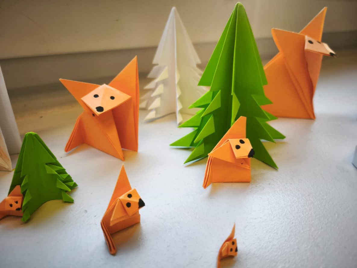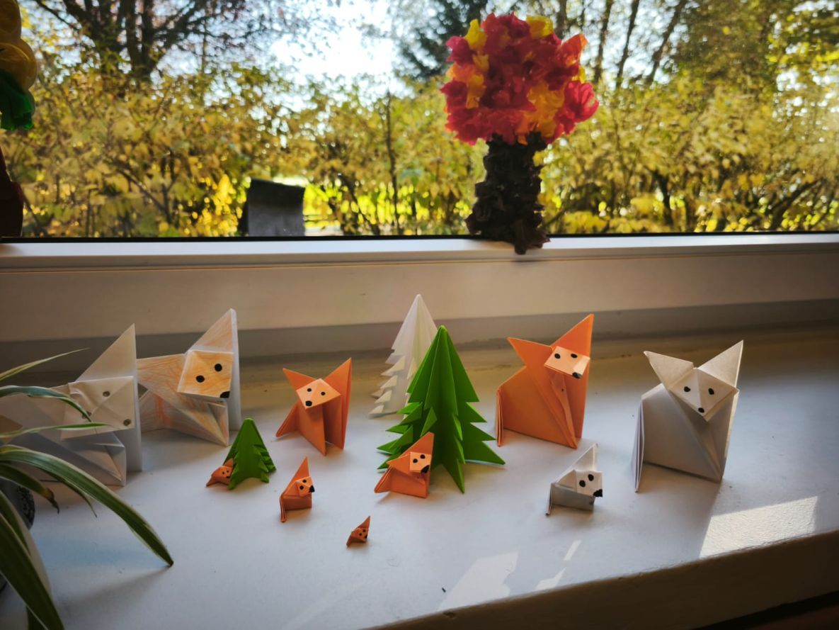 W naszej świetlicy powstały piękne prace plastyczno-techniczne. Dzieci wykonały liski z papieru oraz wyklejały pyszczki zwierzątek z kolorowych liści.