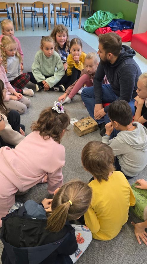 Dnia pierwszego października naszą świetlicę odwiedził pan Szymon Kawała. Opowiadał dzieciom o swojej pasji – poszukiwaniu i zbieraniu skarbów. Pokazał swoje znaleziska, między innymi monety i różne przedmioty ze swojej kolekcji. To było niezwykle ciekawe spotkanie.
