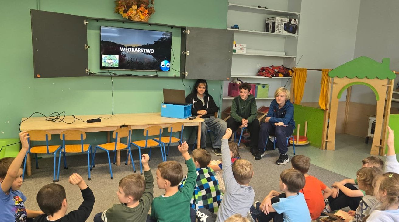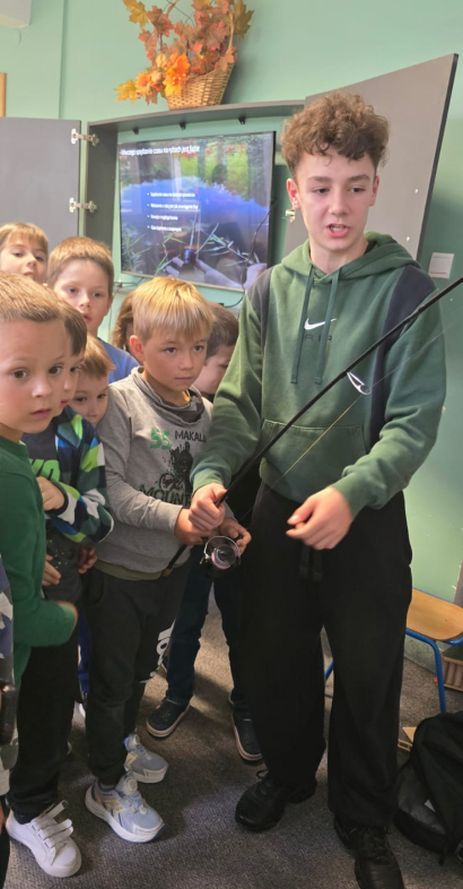 Dnia 2 października naszą świetlicę odwiedzili koledzy z klasy 8c – Stasiu Żurek, Paweł Rzadkiewicz i Przemek Cieślak. Chłopcy opowiedzieli o swojej pasji do wędkowania i podzielili się ciekawostkami o łowieniu ryb. Dzieci z zainteresowaniem słuchały i chętnie zadawały pytania.