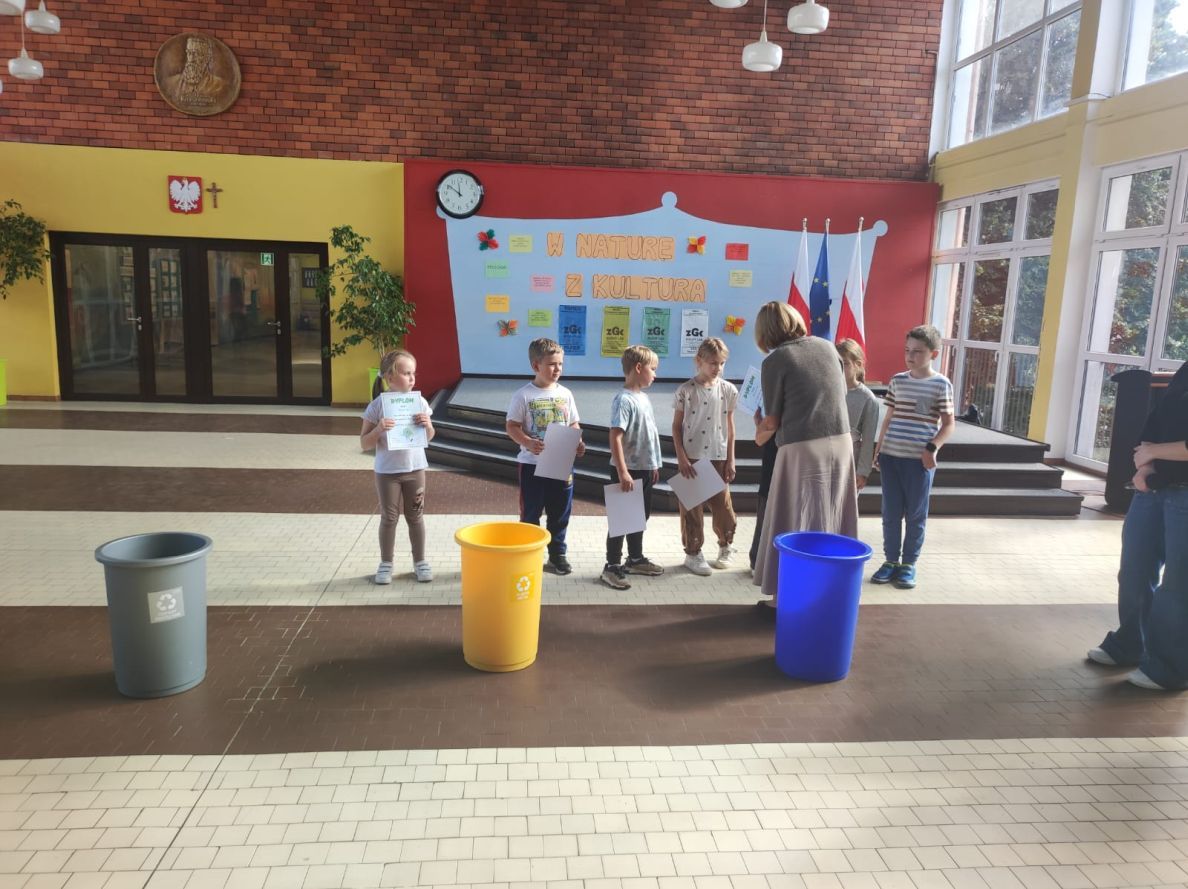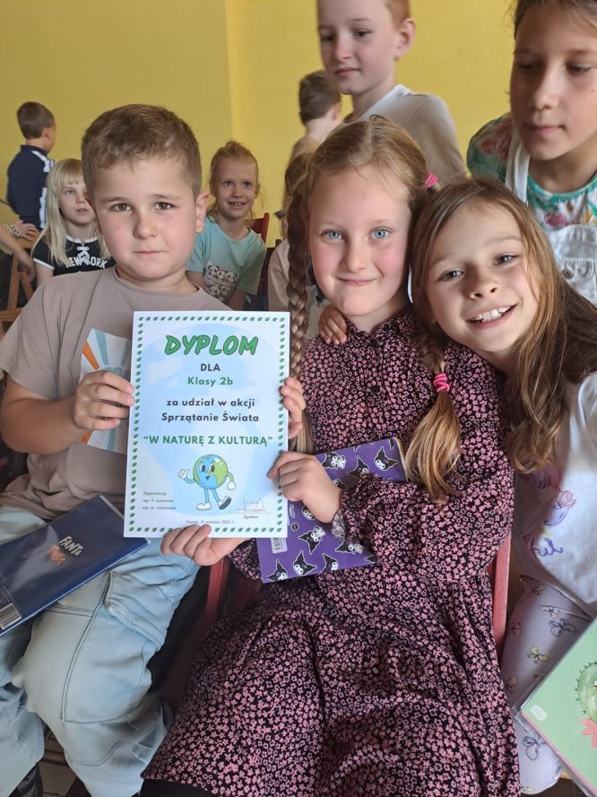 W dniach 18 i 19 września w naszej szkole odbyła się akcja „Sprzątanie Świata”. Tegoroczna edycja przebiegała pod hasłem „W naturę z kulturą”. Klasy trzecie uczestniczyły w porządkowaniu terenu wokół szkoły, natomiast uczniowie klas I–II wzięli udział w wydarzeniu promującym dbałość o środowisko podczas przebywania na łonie natury. Dzieci uczestniczyły w zadaniach związanych z segregacją odpadów oraz w międzyklasowych konkurencjach ruchowych. Na zakończenie każda klasa otrzymała pamiątkowy dyplom.