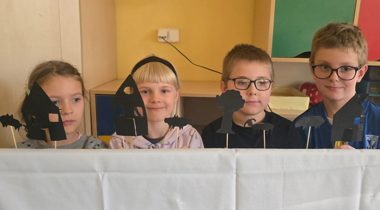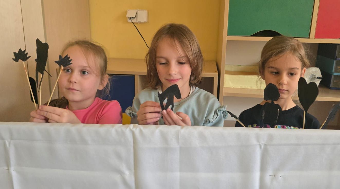 W ramach zajęć koła teatralnego „Metamorfoza” odbył się teatr cieni. Dzieci przygotowały własne papierowe kukiełki i odegrały scenki z wykorzystaniem światła i cienia.