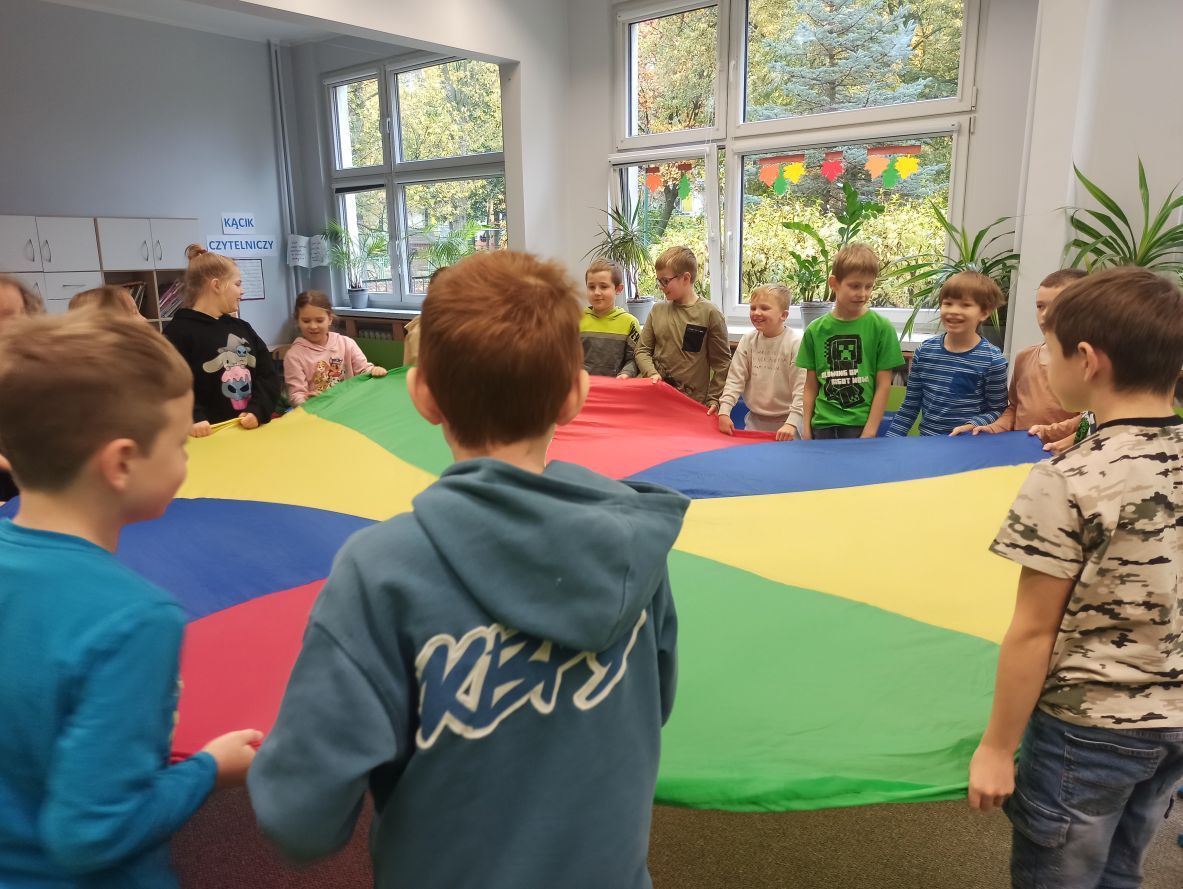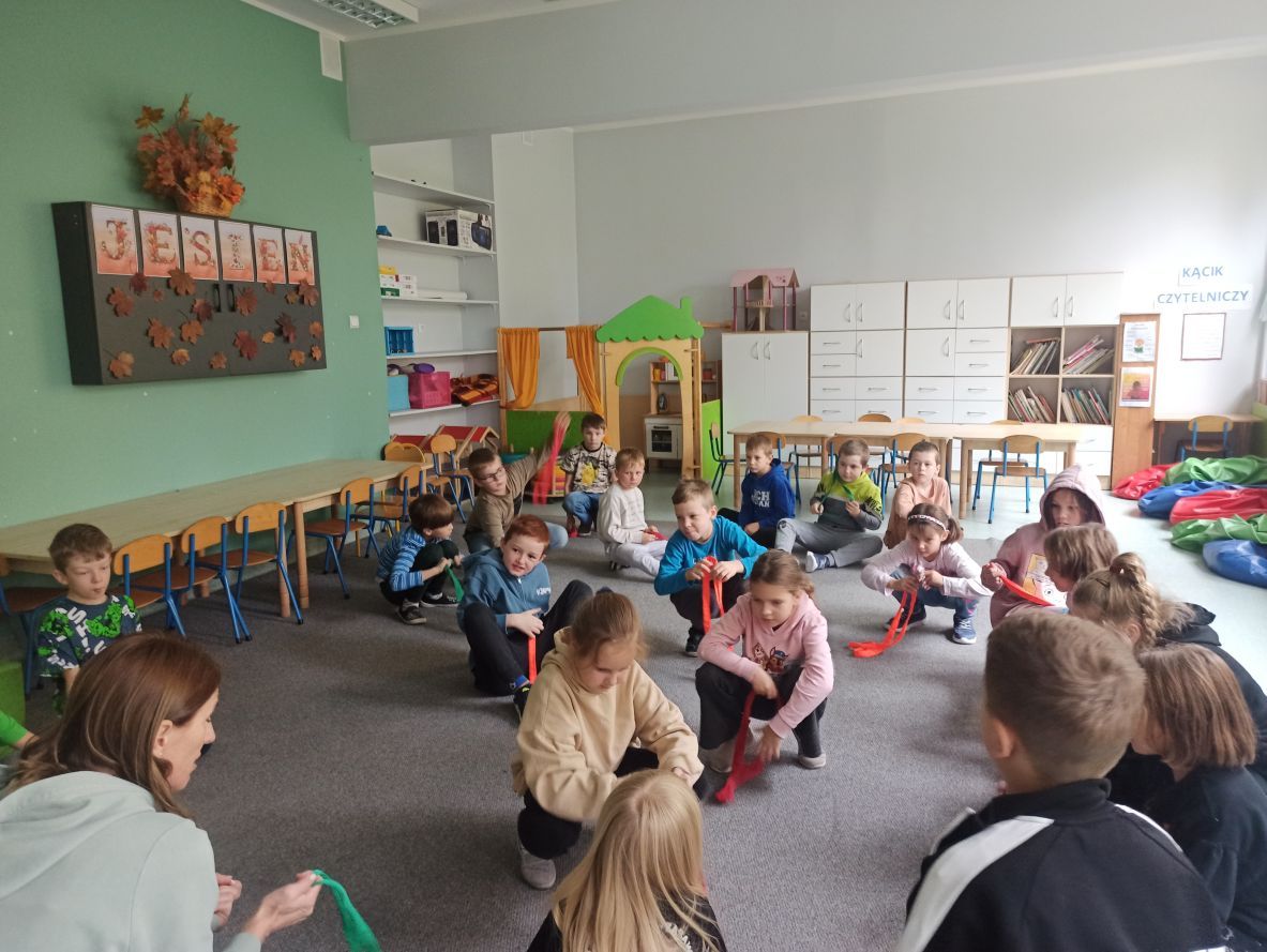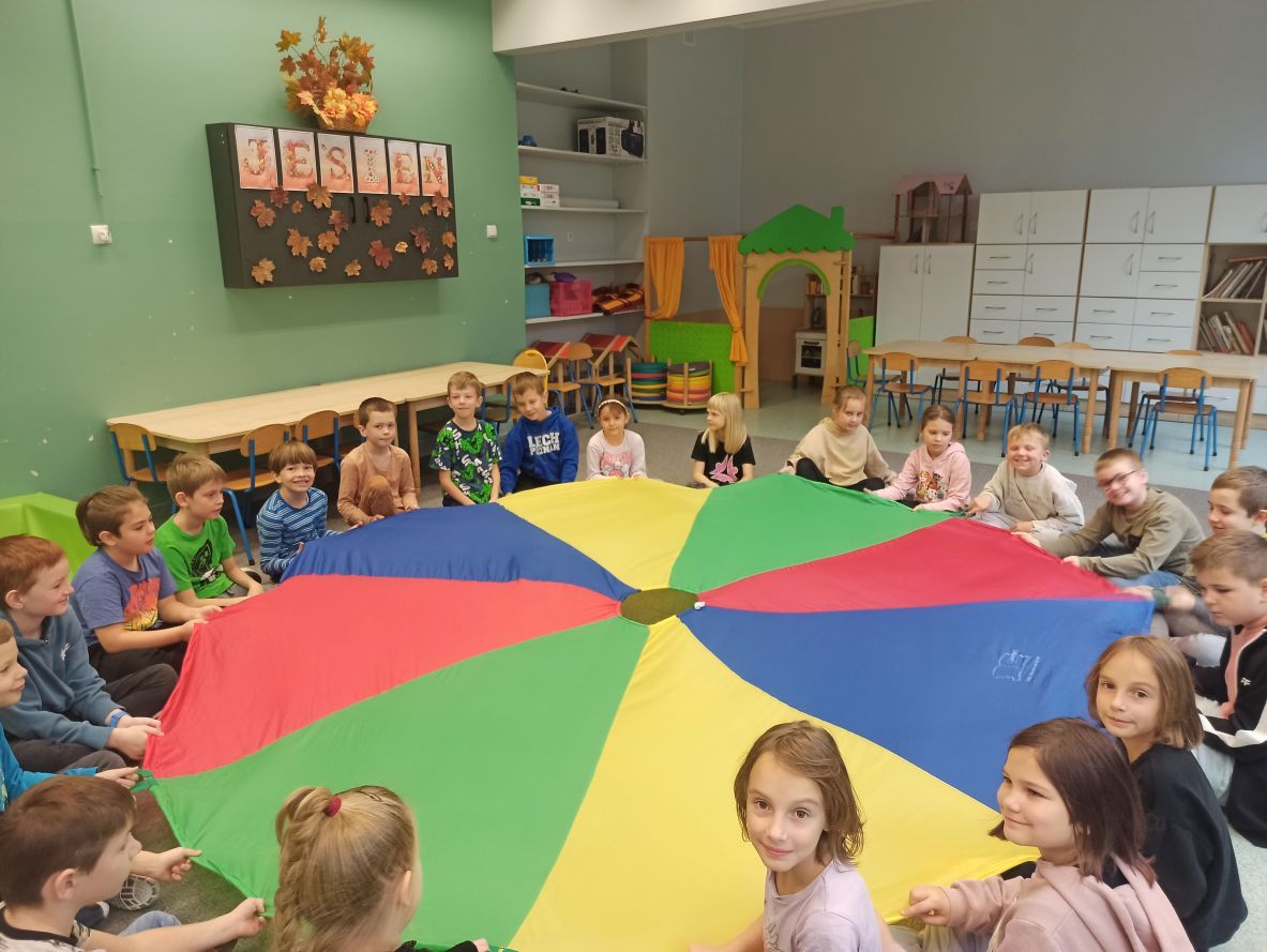 W naszej świetlicy dzieci wzięły udział w zajęciach pełnych zabawy i ruchu. Bawiły się chustą animacyjną Klanza, tańczyły z kolorowymi szarfami oraz relaksowały się przy muzyce Antonio Vivaldiego.