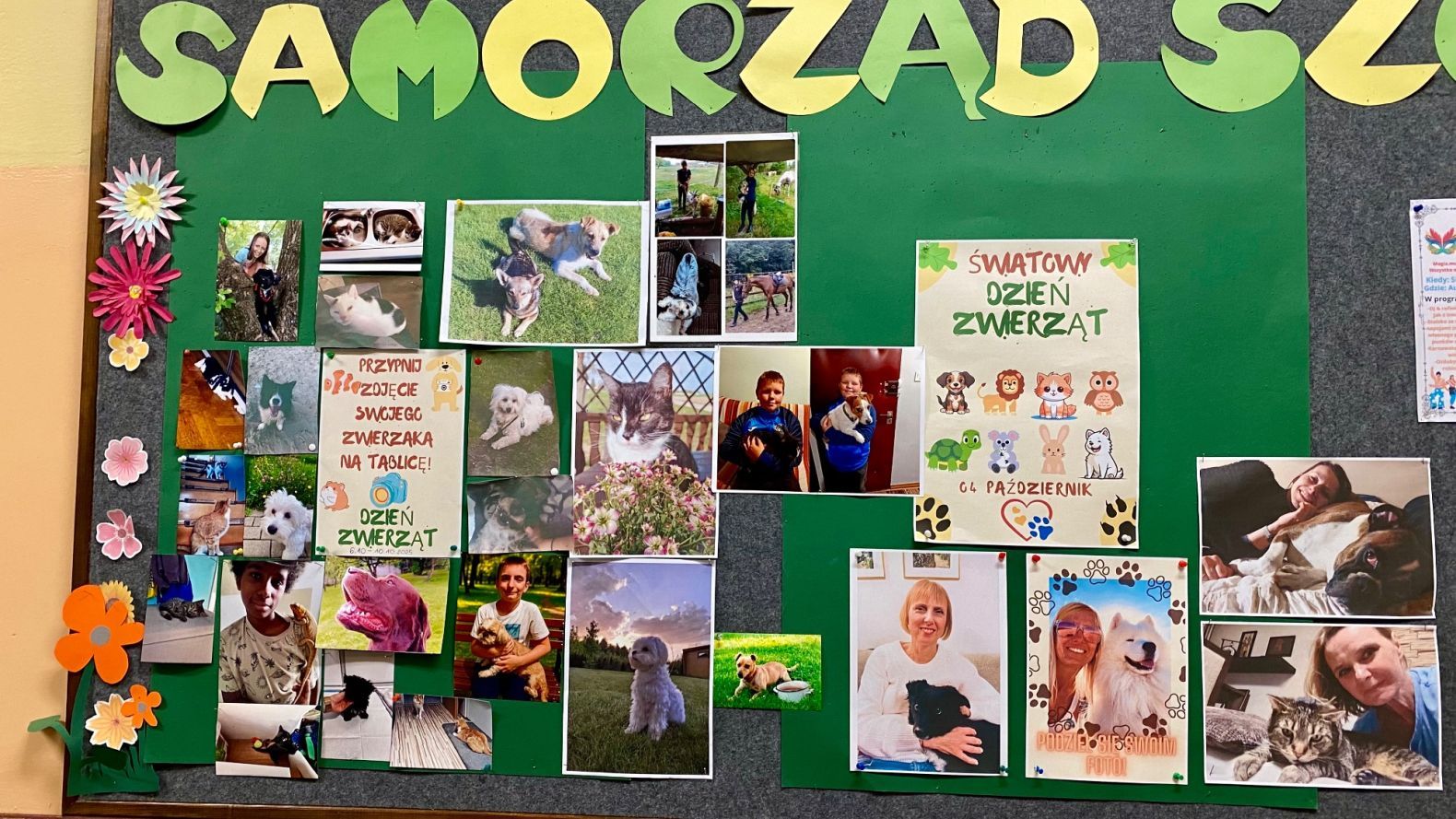 W związku z Międzynarodowym Dniem Zwierząt, który odbył się 4 października Samorząd Uczniowski ogłosił miesiąc październik miesiącem pomocy dla zwierząt. W tym okresie odbywa się kilka przedsięwzięć pod patronatem SU. Uczniowie mieli okazję  w tygodniu od 6.10-13.10 podzielić się z całą społecznością szkolną zdjęciami swoich puchatych przyjaciół które zwisły na jednej z tablic szkolnych. Akcja cieszyła się sporym zainteresowaniem i nasi uczniowie stworzyli tablice ze szczęśliwymi zwierzakami. Serdecznie dziękujemy za zaangażowanie.
