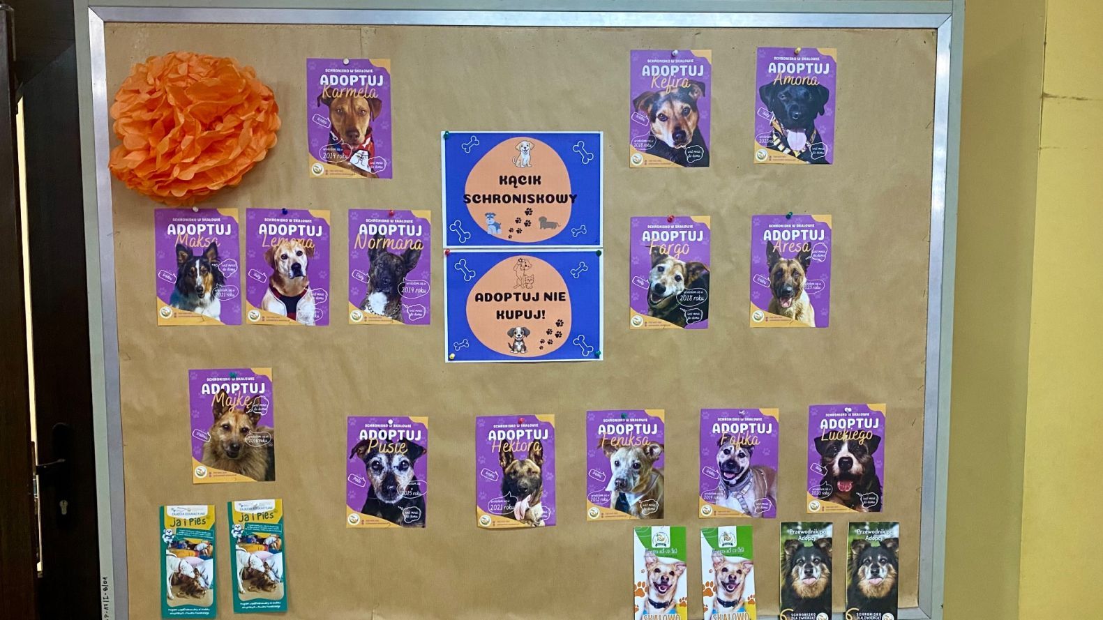 Uczniowie i opiekunowie z Samorządu również zaangażowali się w akcję „Nie kupuj ADOPTUJ!. Dyrekcja schroniska dla zwierząt w Skałowie przesłała foldery informacyjne dotyczące adopcji oraz ulotki z pieskami do adopcji które nie znalazły jeszcze wymarzonego domu. Wszystkie informację zostały zamieszczone na tablicy w holu szkolnym tworząc „Schroniskowy kącik adopcyjny”. Uczniowie i rodzice mogą w najbliższym czasie zapoznać się z procedurami adopcyjnymi i poznać zwierzęta które czekają na dom.