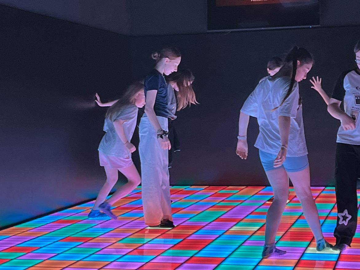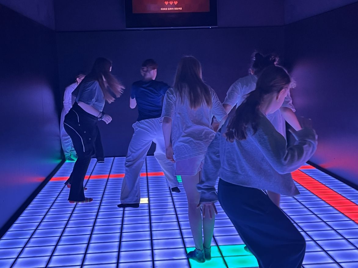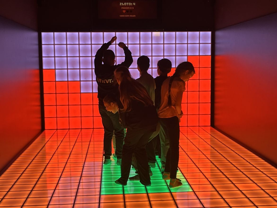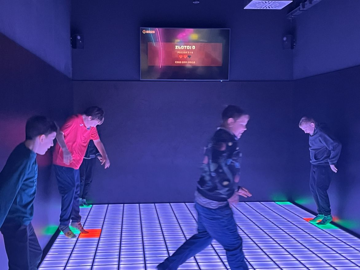 W ramach mikołajkowych atrakcji uczniowie klas 5c i 5d odwiedzili centrum interaktywnej rozrywki Pixel XL w Poznaniu. To miejsce, w którym nowoczesna technologia łączy się z aktywną zabawą – zamiast tradycyjnych kontrolerów uczestnicy poruszają się po specjalnych, podświetlanych matach, biorąc udział w grach zręcznościowych i logicznych.
