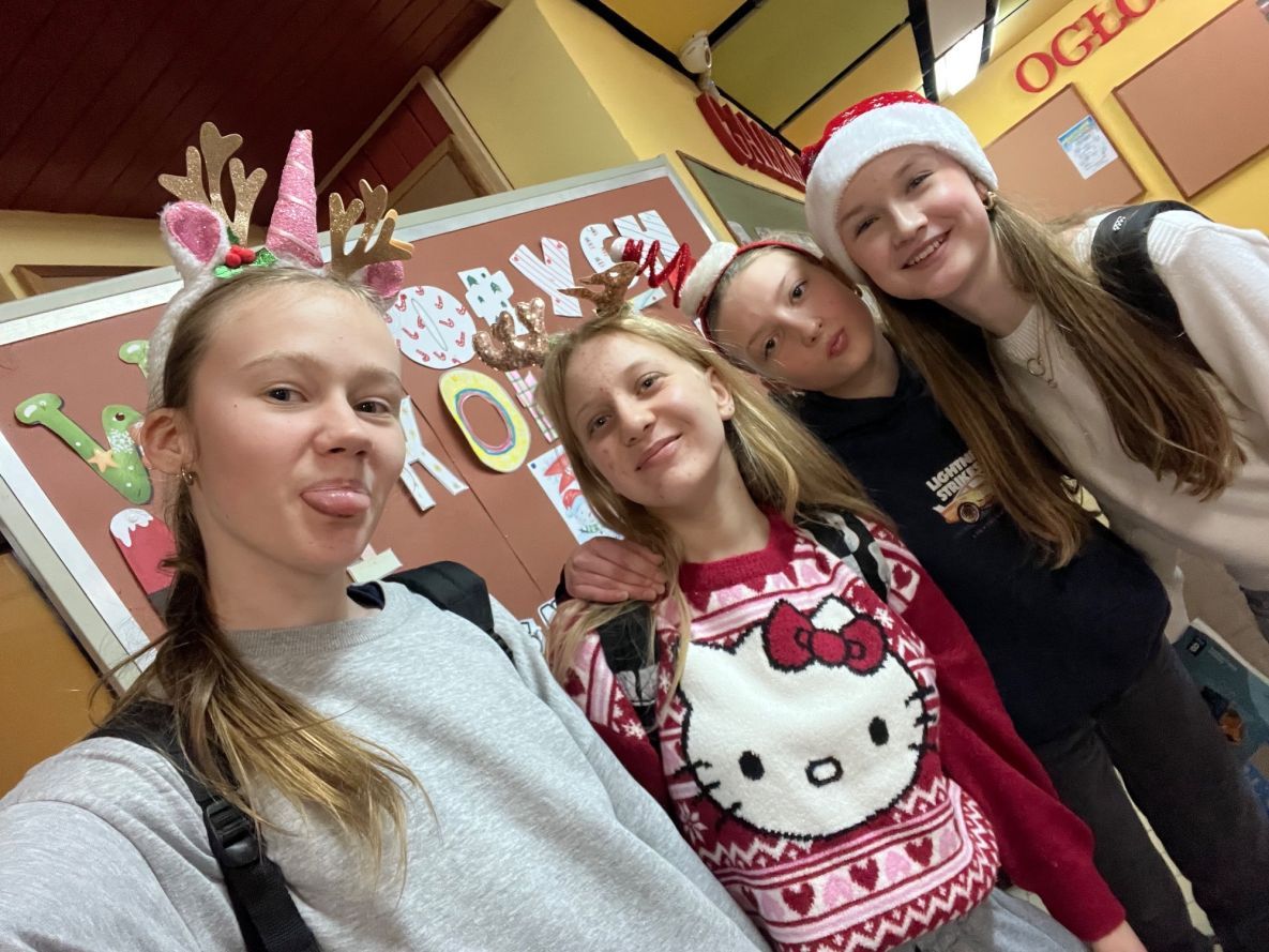 W piątek 5.12 obchodziliśmy w naszej szkole Mikołajki. Uczniowie w tym dniu otrzymali wyzwanie od Samorządu i mieli za zadanie ubrać się w świąteczne stylizację. Na korytarzach szkolnych udzieliła się świąteczna atmosfera, ponieważ wielu naszych uczniów ubrało się w kolory zielony i czerwony a wielu z nich ubrało świąteczne gadżety w postaci czapek mikołaja, rogów renifera i świątecznych sweterków. Każdy mógł poczuć że Święta już tuż tuż…