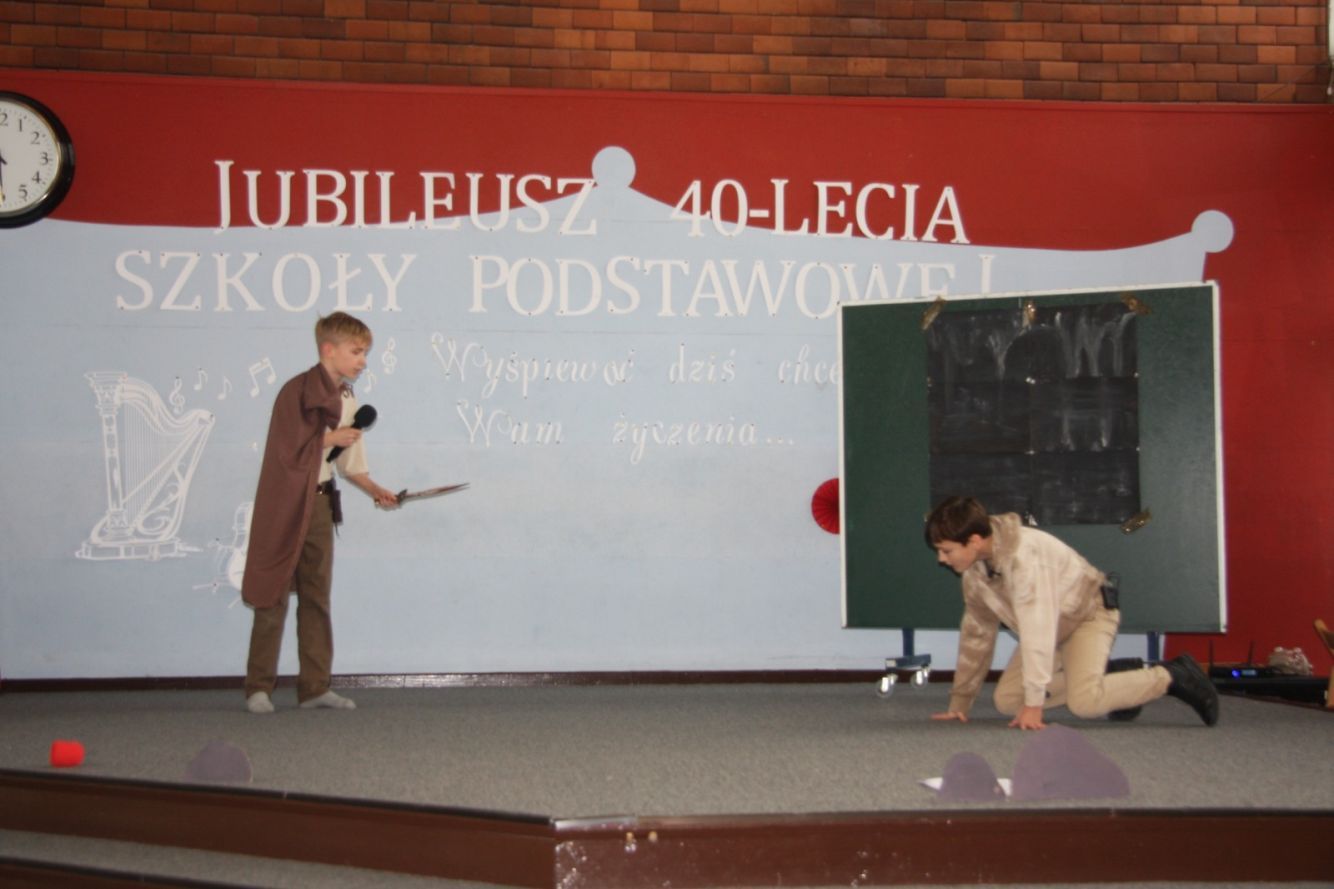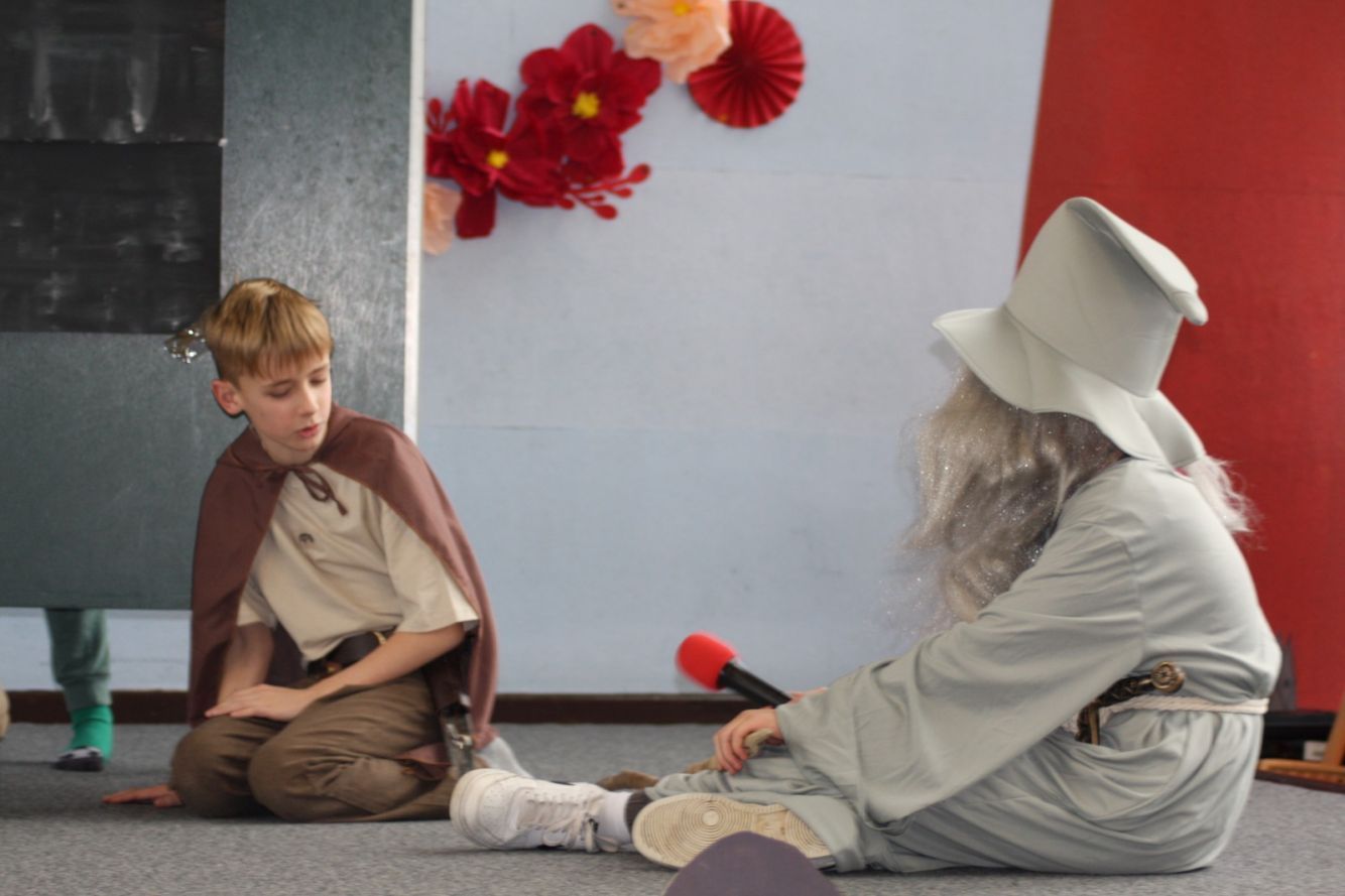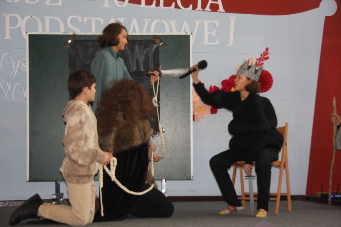 Klasa 6a w ramach projektu, którego celem jest przybliżenie problematyki lektur szkolnych, przygotowała sceniczną adaptację powieści J.R.R. Tolkiena pt. ,,Hobbit, czyli tam i z powrotem”. Uczniowie przygotowali scenariusz oparty na treści książki, później samodzielnie podzielili się zadaniami w grupie, przygotowali scenografię i stroje dla poszczególnych postaci. Wykazali się niezwykłą pomysłowością i zaangażowaniem. Ponadto postanowili podzielić się wynikami swojej pracy, zapraszając innych uczniów do obejrzenia przygotowanego przez siebie przedstawienia. Spektakl spotkał się z bardzo entuzjastycznym przyjęciem, a młodzi aktorzy przyjmowali gratulacje zarówno od uczniów, jak i od nauczycieli oglądających występ.