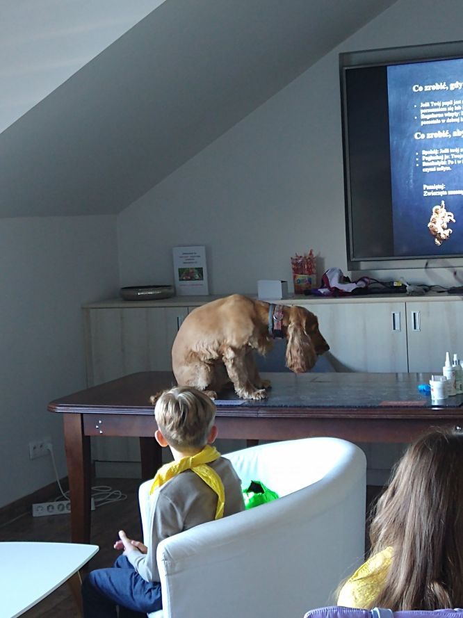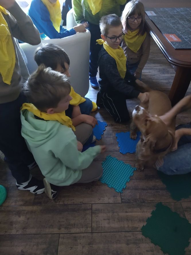 Podczas spotkania dzieci miały okazję obejrzeć gabinety lekarskie i sale zabiegowe. Dowiedziały się, jak wygląda badanie zwierząt oraz jakie narzędzia i sprzęty są potrzebne w pracy weterynarza. Uczniowie z zainteresowaniem słuchali opowieści o sposobach leczenia różnych zwierząt domowych. Podczas spotkania Dzieciom towarzyszył przyjazny pies „Karmelek”, który niewątpliwie był niemałą atrakcją i dzielnie poddawał się prezentowanym zabiegom.