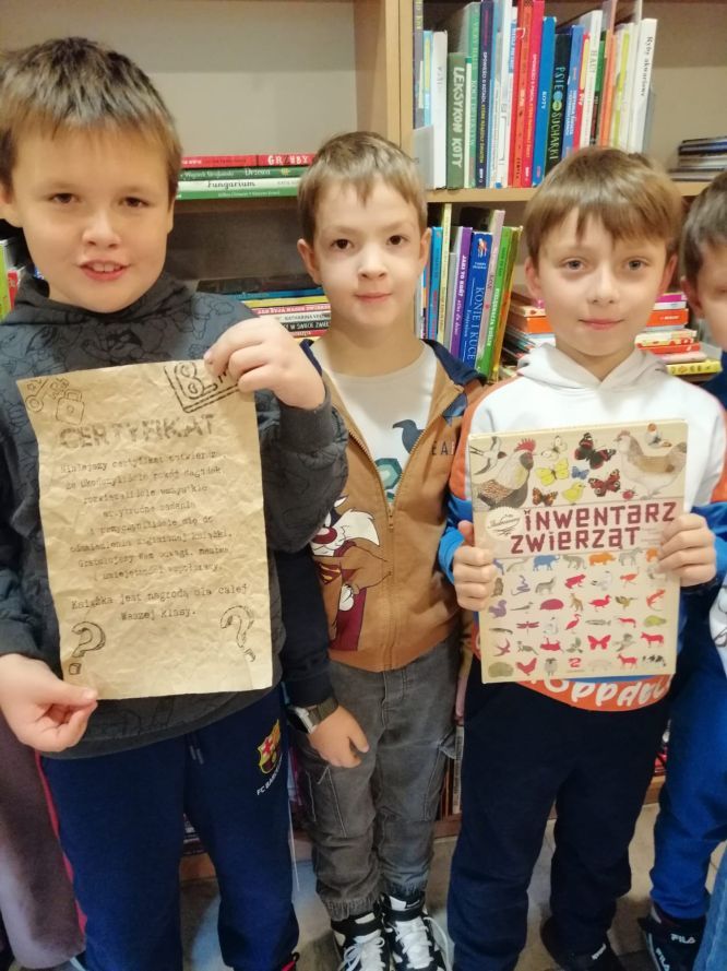 Dzięki współpracy, sprytowi i wytrwałości wszystkie klasy odnalazły swoje książki i z dumą wróciły z nimi do szkoły.