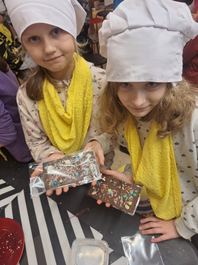Najwięcej radości sprawiło uczniom samodzielne przygotowanie własnej tabliczki czekolady, które pozwoliło rozwijać ich sprawność manualną oraz kreatywność. W czasie rozmów z prowadzącymi dzieci przypomniały sobie także, jak ważne jest umiarkowane spożywanie słodyczy i dbanie o zdrowy styl życia.