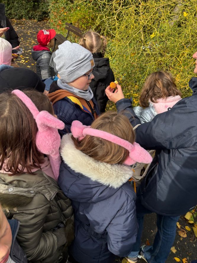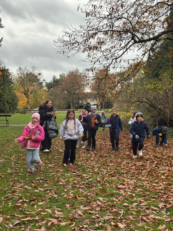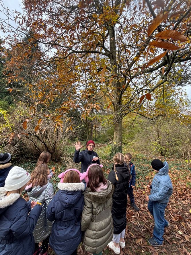 16 października 2024 roku uczniowie klasy 3b odwiedzili Ogród Dendrologiczny Uniwersytetu Przyrodniczego. W przepięknych okolicznościach przyrody penetrowali dzikie zakątki ogrodu, obserwując zmiany zachodzące w przyrodzie jesienią. Po ogrodzie oprowadzała pani przewodniczka, która w interesujący sposób opowiadała o drzewach i krzewach.Dzieci zwróciły szczególną uwagę na kasztanowca z jadalnymi kasztanami. Każdy z uczniów chciał znaleźć w trawie owoc tego ciekawego drzewa.Podczas tej wyprawy dzieci szukały ciekawych materiałów do skonstruowania instrumentów muzycznych. Z tych skarbów lasu stworzyły „orkiestrę symfoniczną”. Wycieczka była ciekawa i na pewno wzbogaciła wiedzę o roślinach i zwierzętach.