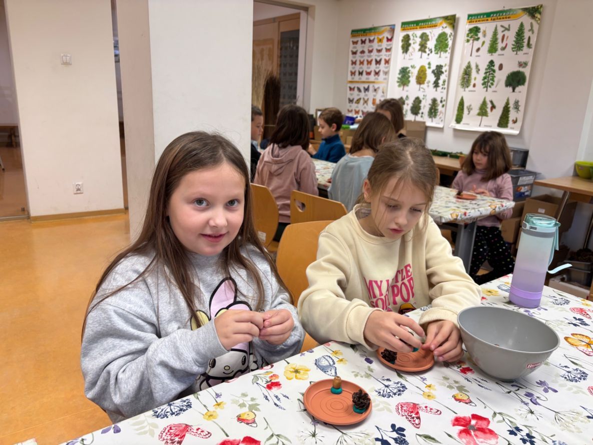 Na zakończenie przygody klasa wzięła udział w warsztatach technicznych, podczas których wykonała piękne jesienne stroiki z mchu, żołędzi i kasztanów. Było kolorowo, kreatywnie i bardzo jesiennie!
