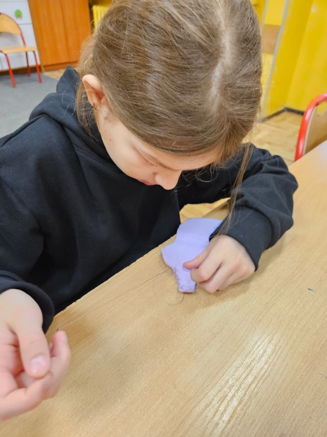 Podczas zajęć dzieci uczyły się radzić sobie z trudnościami: nawlekanie nitki, dbanie o precyzję czy rozplątywanie supłów to zadania, które potrafią wywołać emocje. Dzięki temu uczniowie przekonali się, że: prośba o pomoc to mądrość, nie słabość, każdy napotyka problemy i to zupełnie naturalne, cierpliwość i spokojne działanie naprawdę pomagają w osiąganiu celu.