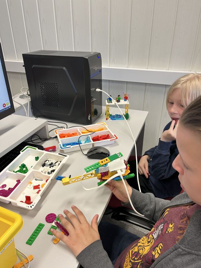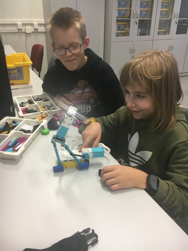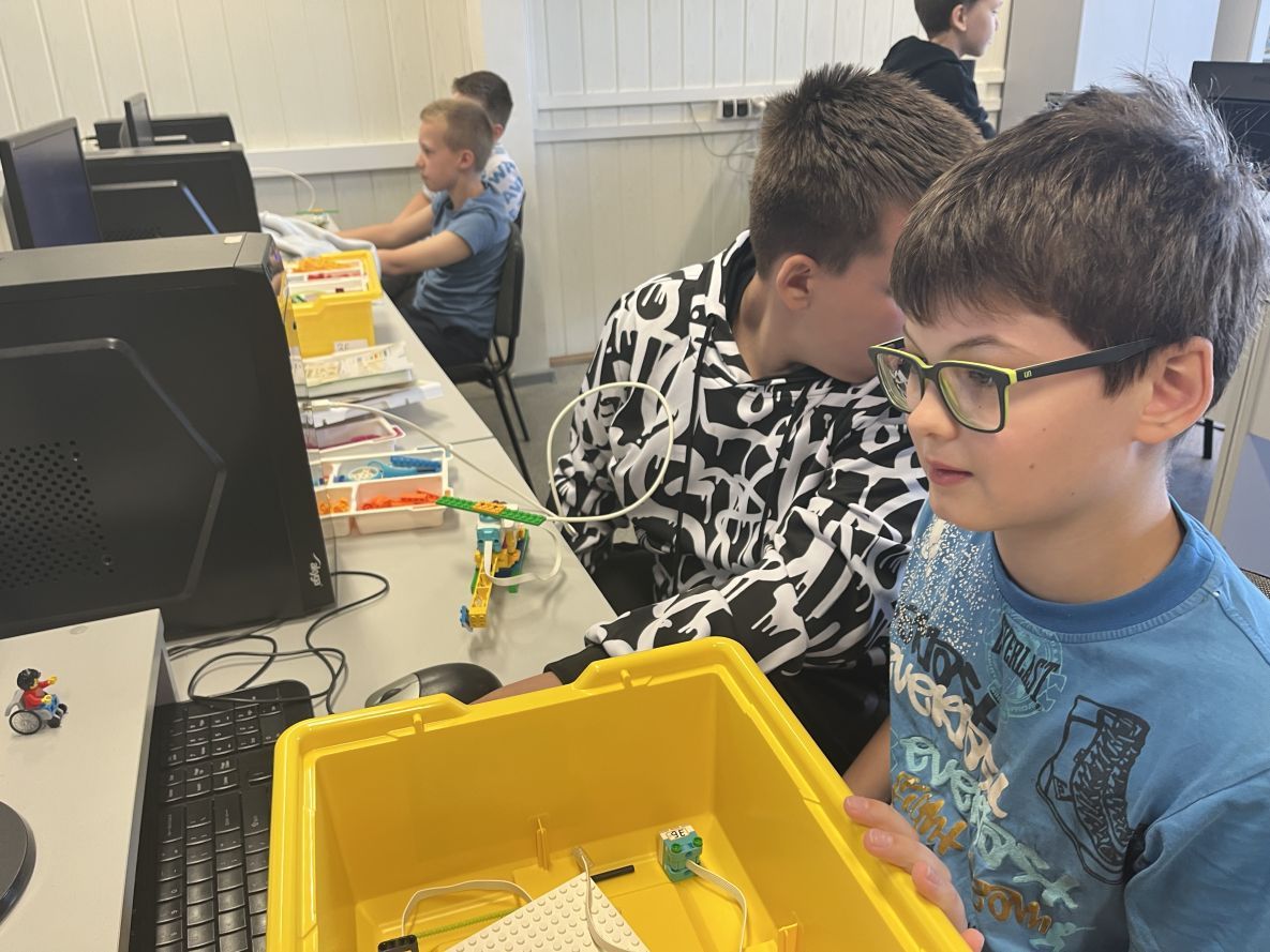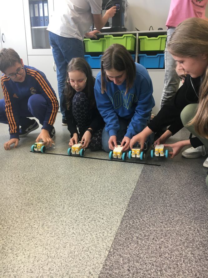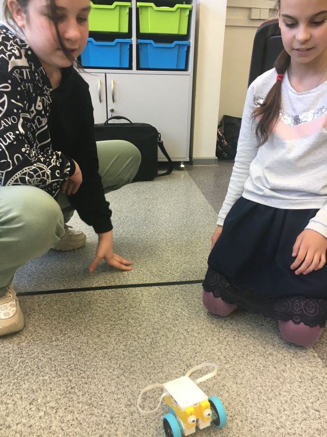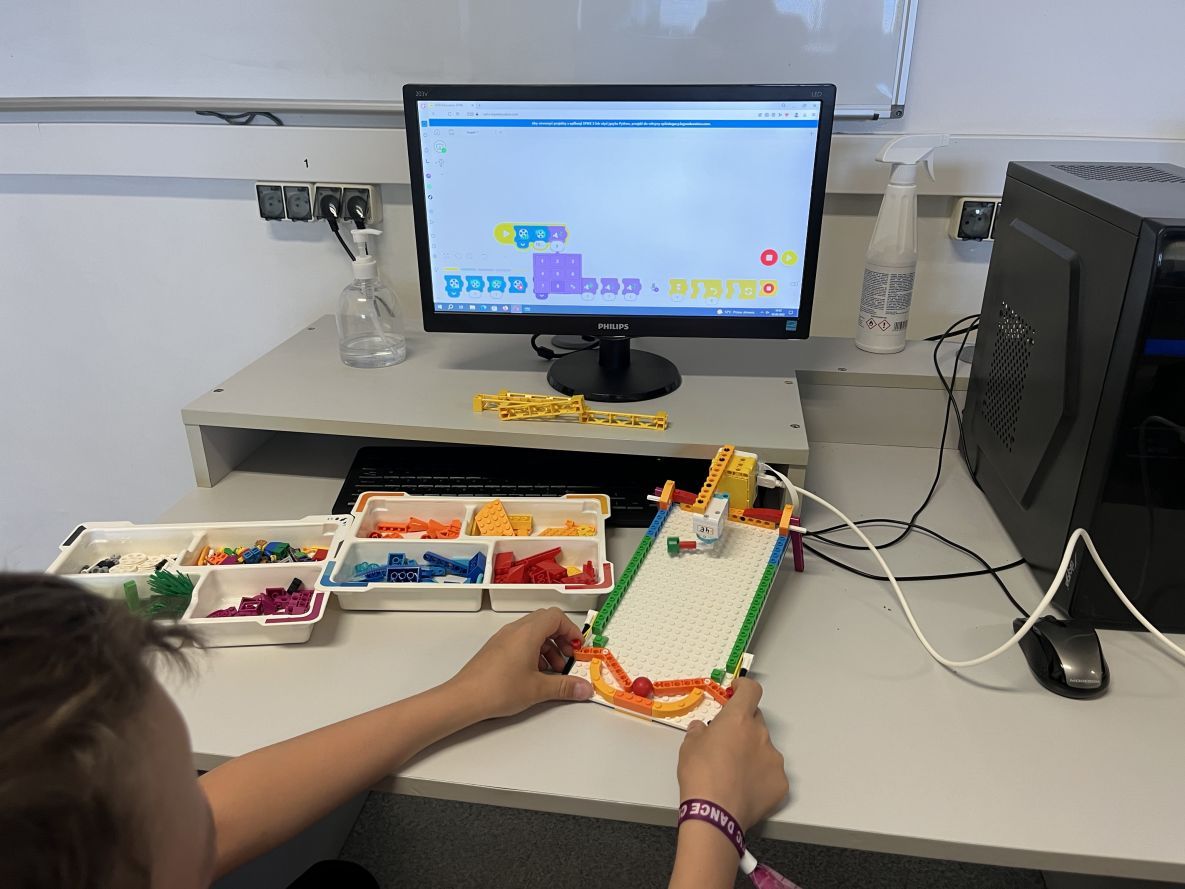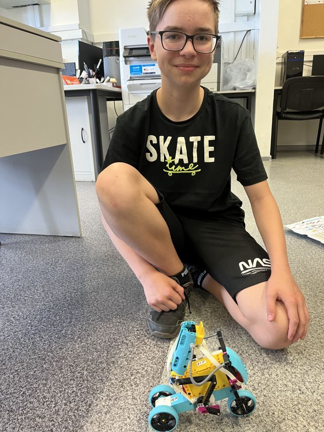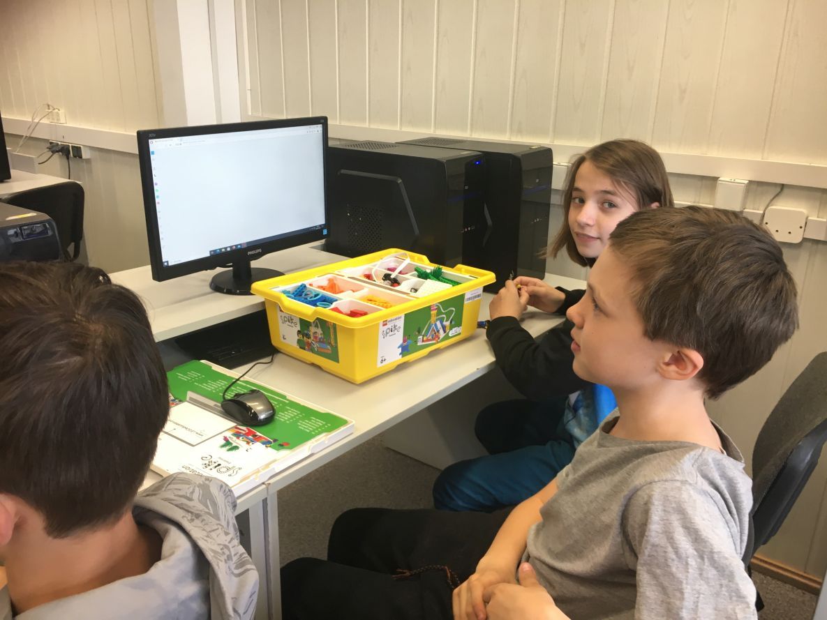 Na lekcjach informatyki w klasach czwartych i piątych zorganizowaliśmy wyścigi skoczków Lego Spike Prime. Po zbudowaniu skoczka według instrukcji, wprawieniu go w ruch i wypróbowaniu jego możliwości w wyścigu, nastąpiło tworzenie prototypu nowych odnóży, aby skoczek posuwał się naprzód szybciej.
