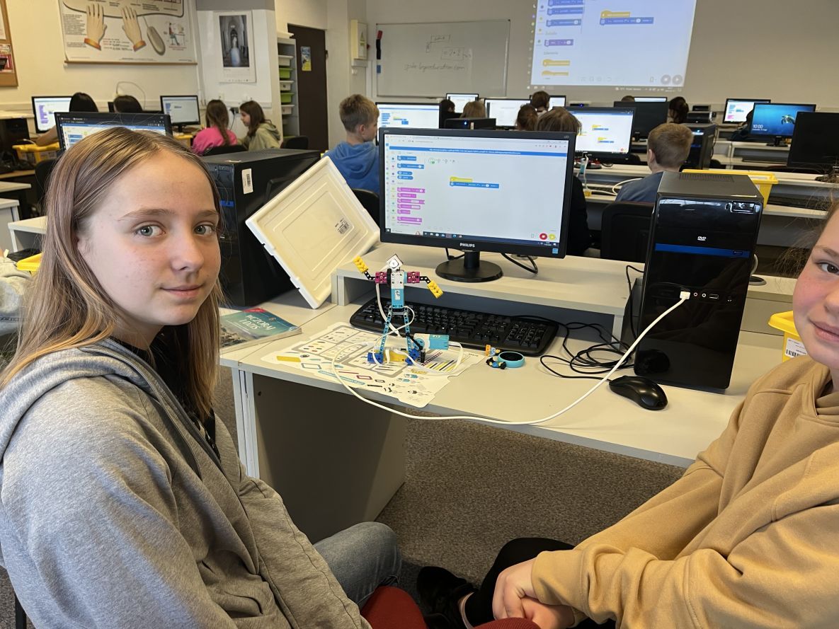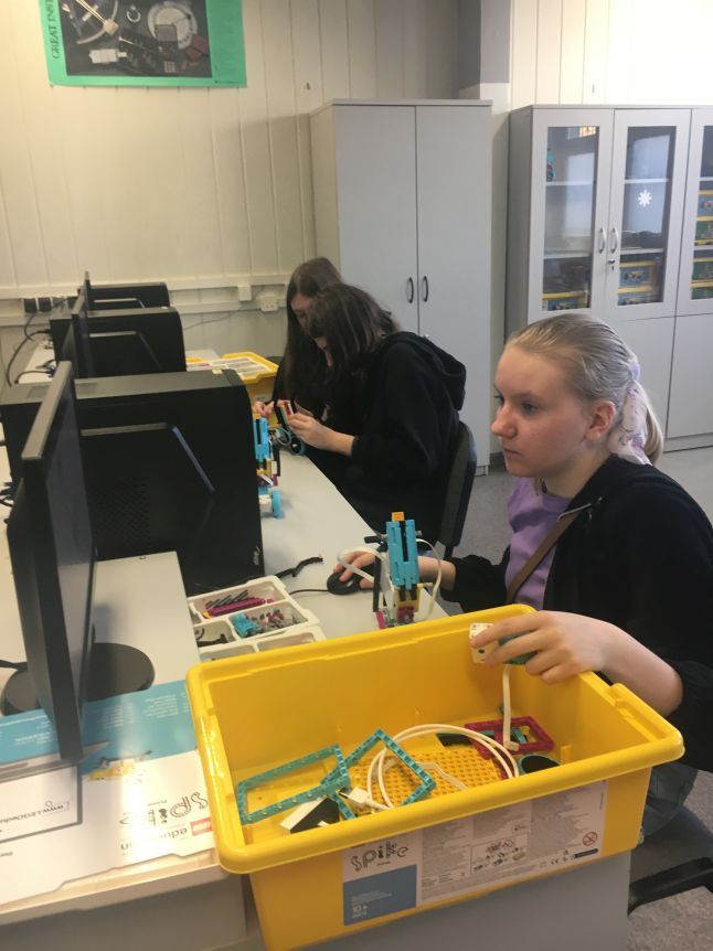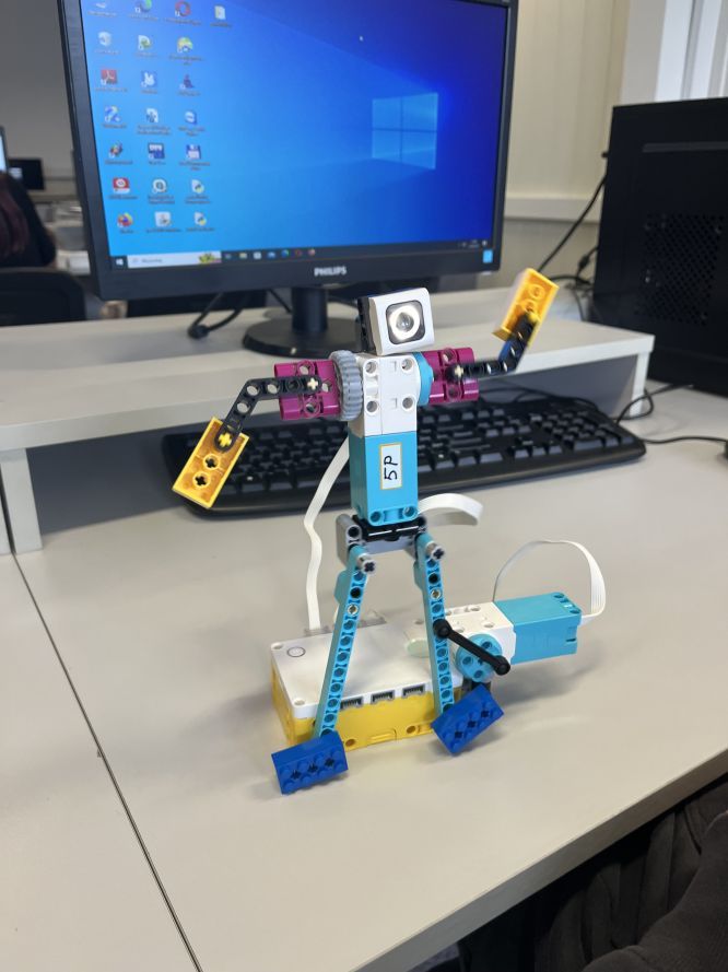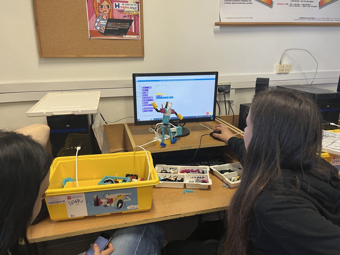 Na lekcjach informatyki w klasach szóstych uczniowie konstruowali i programowali tancerza z zestawu Lego Spike Prime.