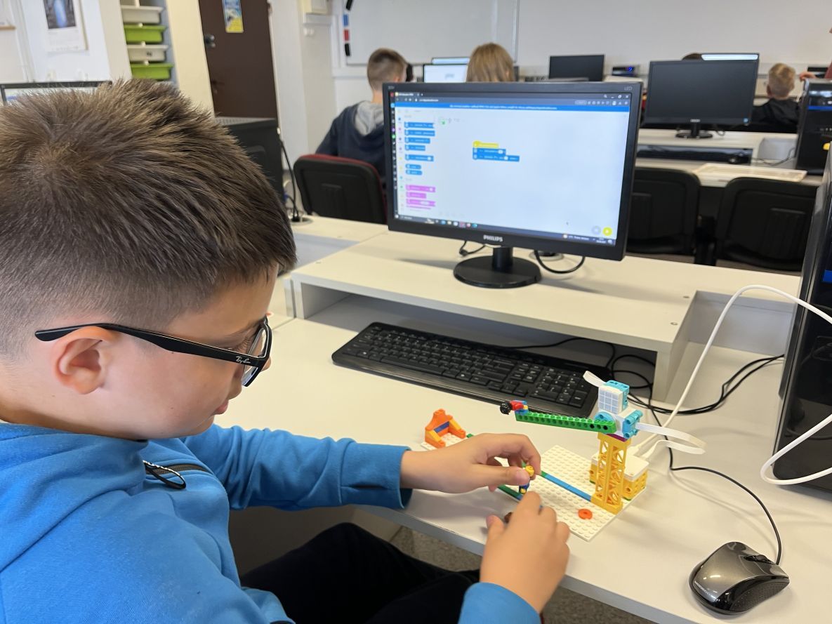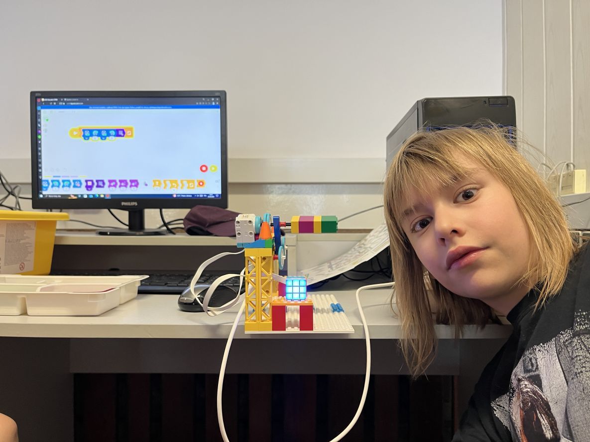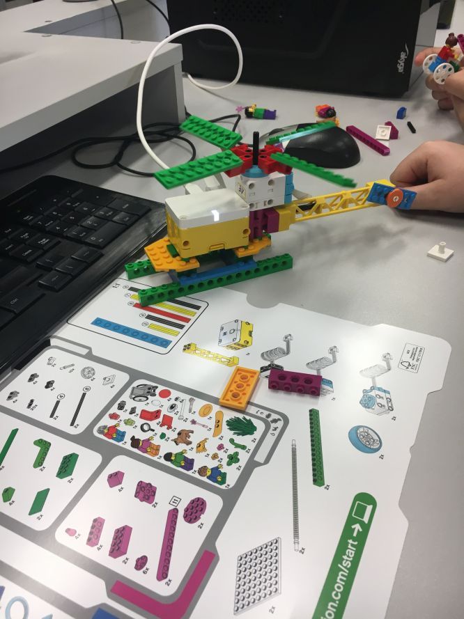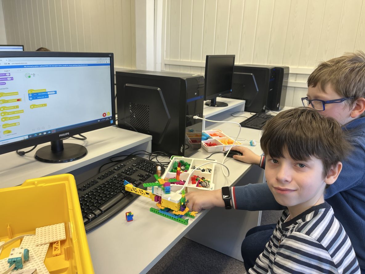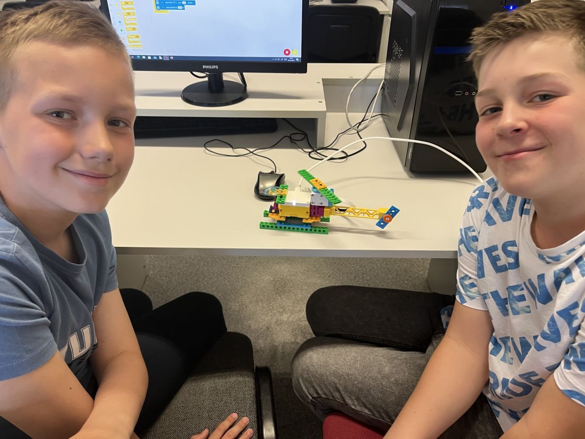 Wiele radości na lekcjach informatyki sprawia konstruowanie i programowanie modeli z klocków Lego Spike Essential. Tym razem budowaliśmy śmigający śmigłowiec. Uczniowie wprowadzili bardzo ciekawe własne modyfikacje do wykonywanego projektu.