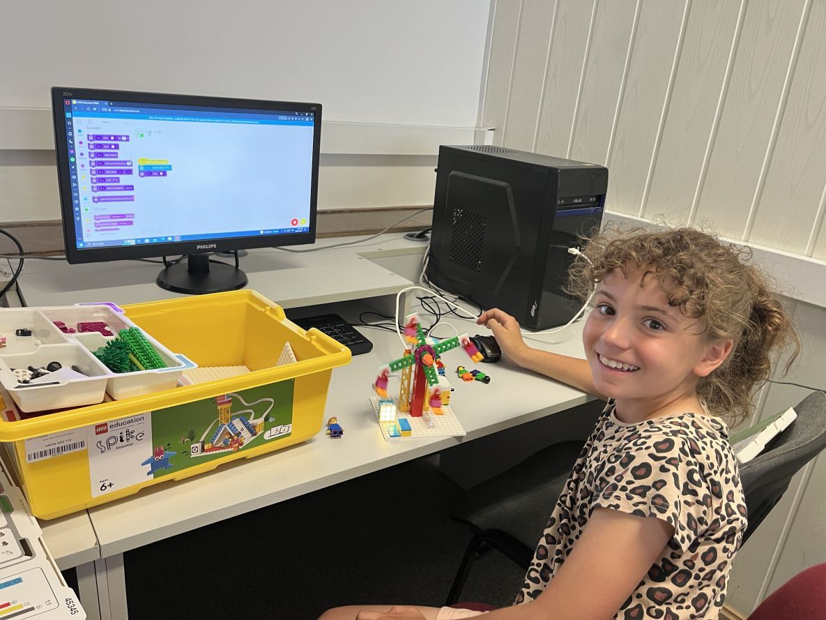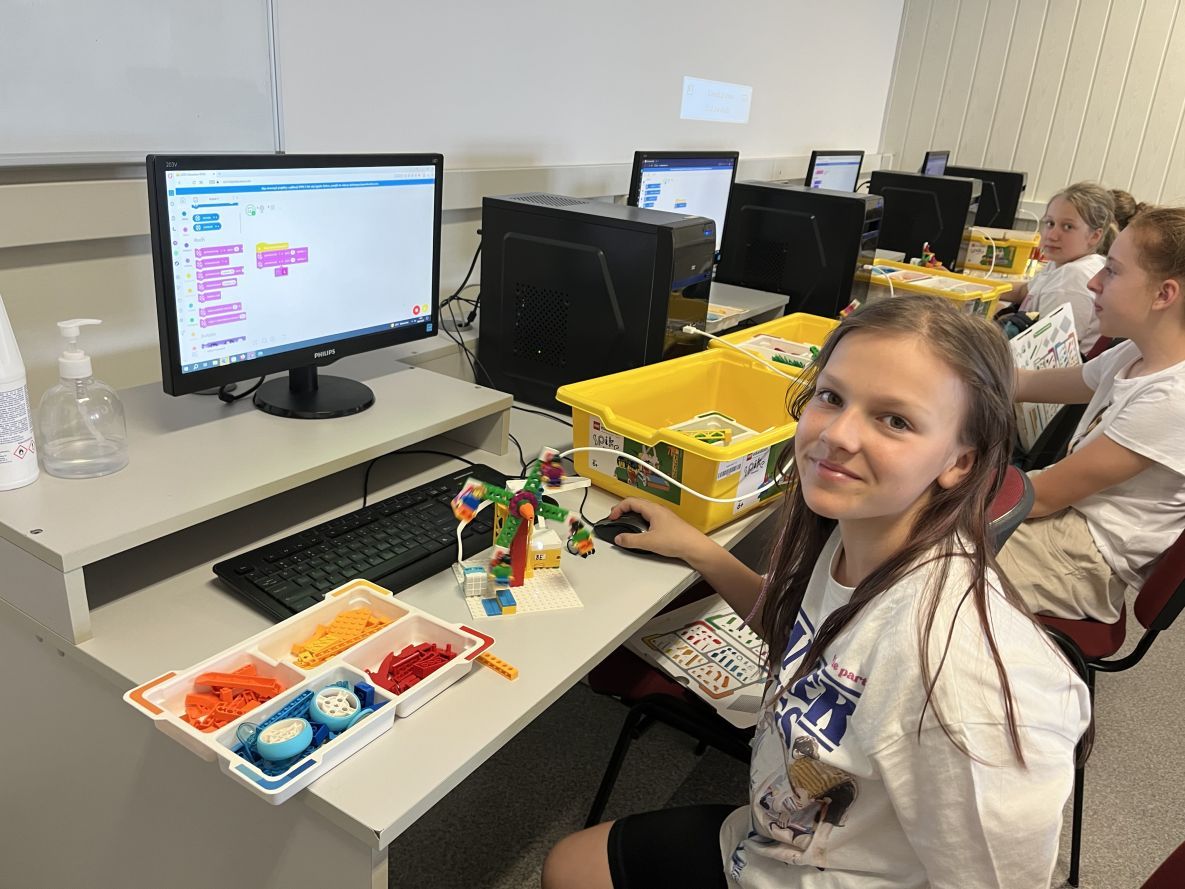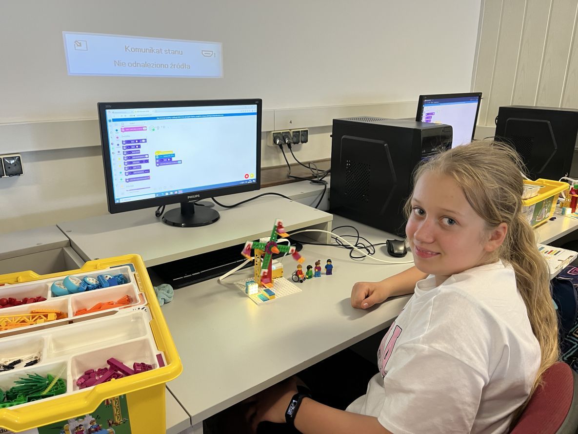 Na zajęciach robotyki realizowaliśmy własne projekty z Lego Spike Essential oraz Prime. Każda uczestniczka konstruowała i programowała swój dowolny model.