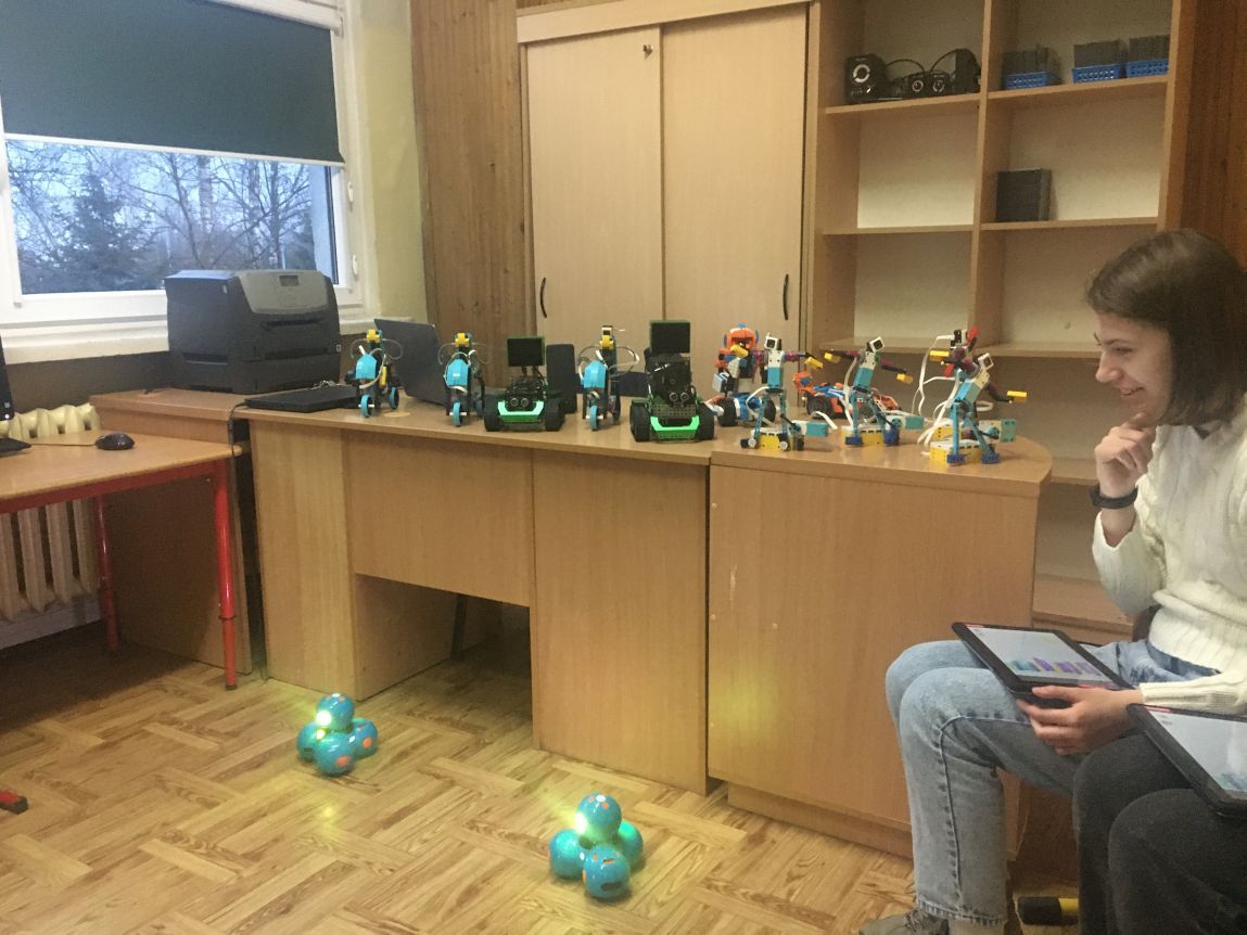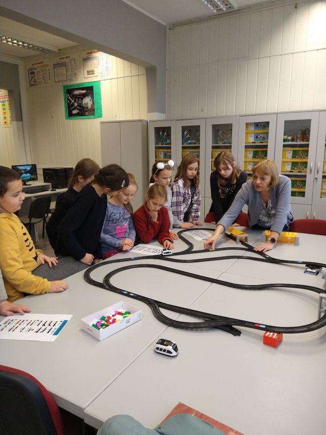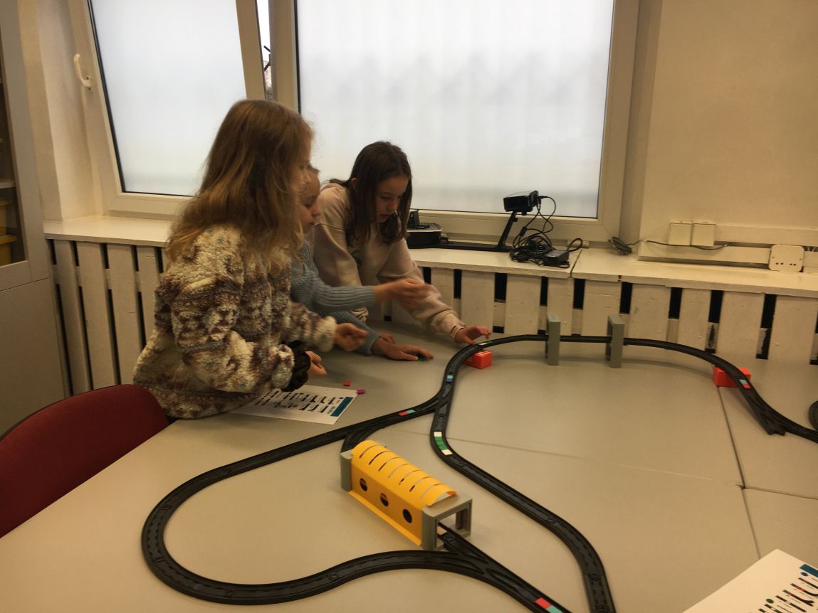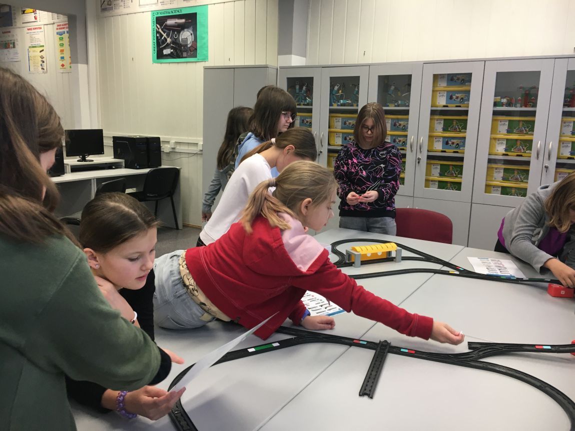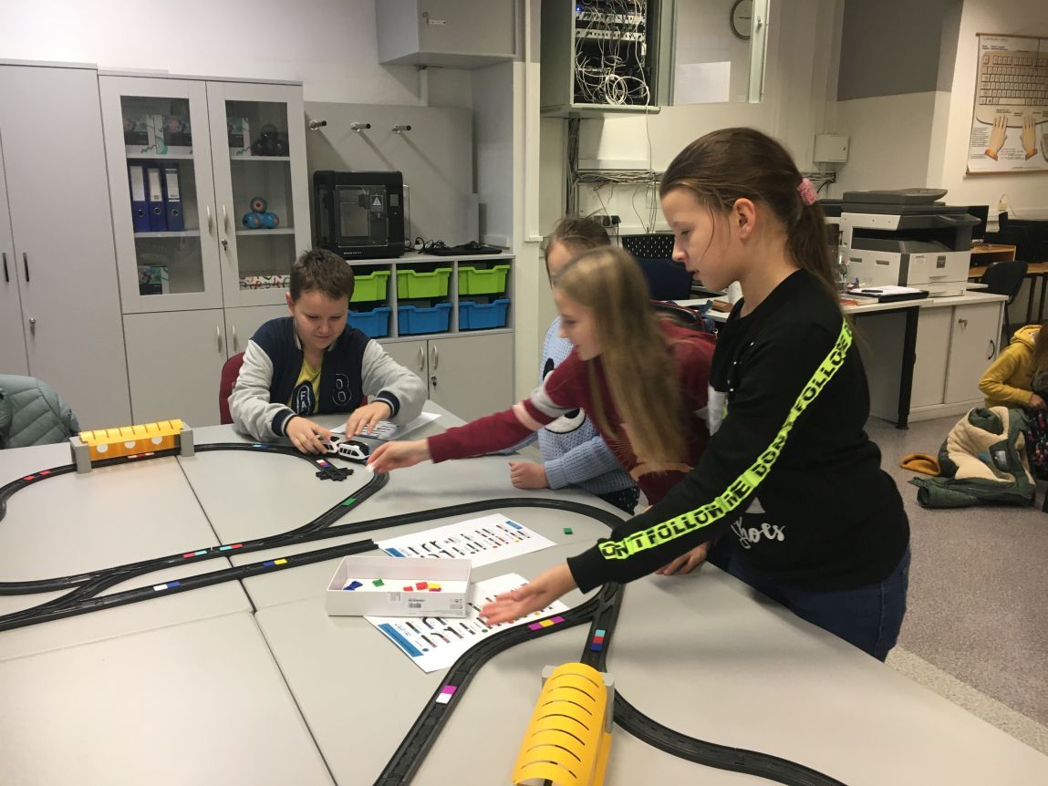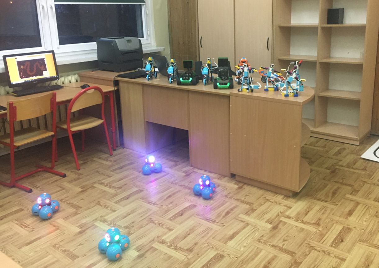 Uczniowie klas 1b, 1d, 2b, 2d, 3b i 3c w listopadzie odwiedzili szkolną pracownię informatyczną i wzięli udział w cyklu lekcji kodowania z inteligentnym pociągiem INTELINO. Pociąg wykorzystuje najnowszą technologię w dziedzinie robotyki, dzięki czemu można sterować nim zdalnie za pośrednictwem aplikacji. Uczniowie uczyli się programowania w zabawnej grze i wykorzystywali nowoczesne technologie w praktyce. Dodatkowo dzieci zapoznały się z robotami DASH , CUE i tancerzem LEGO SPIKE PRIME.