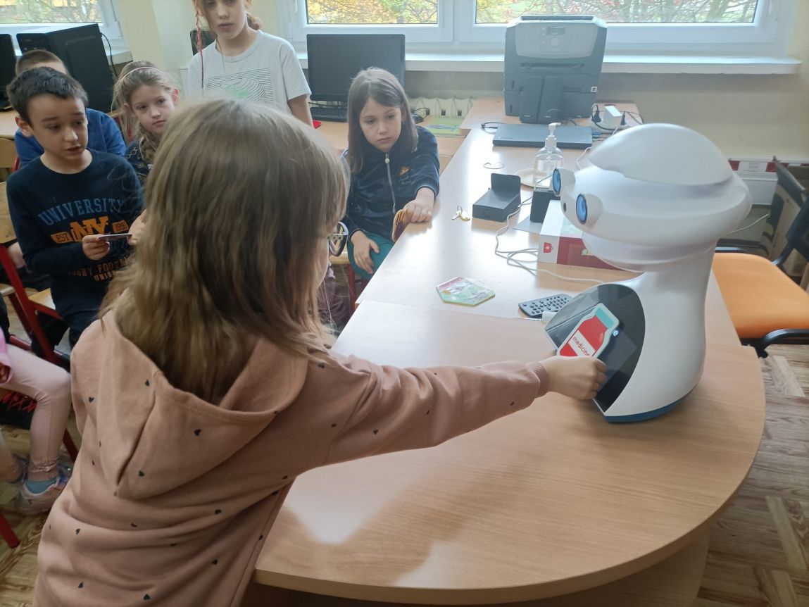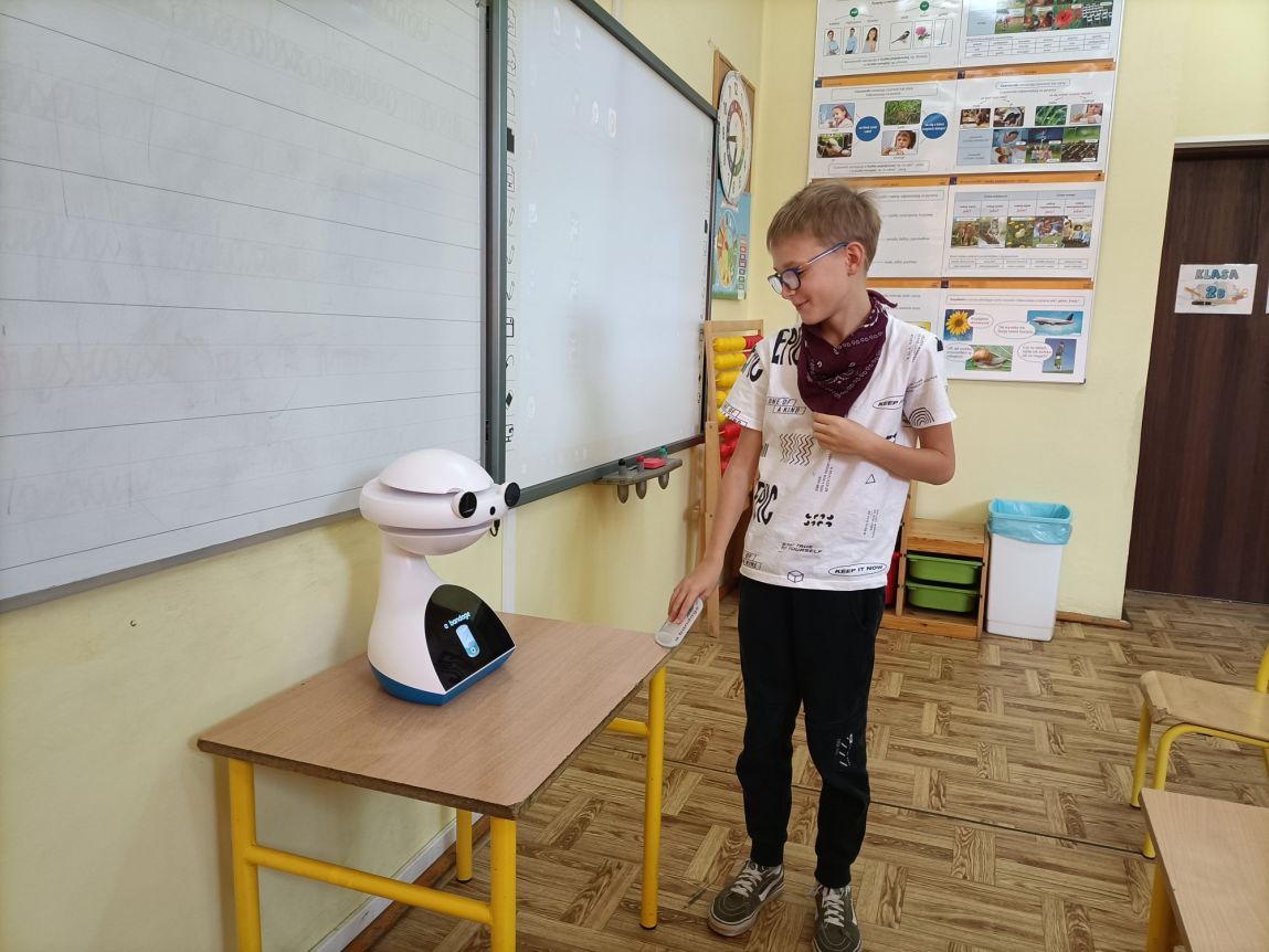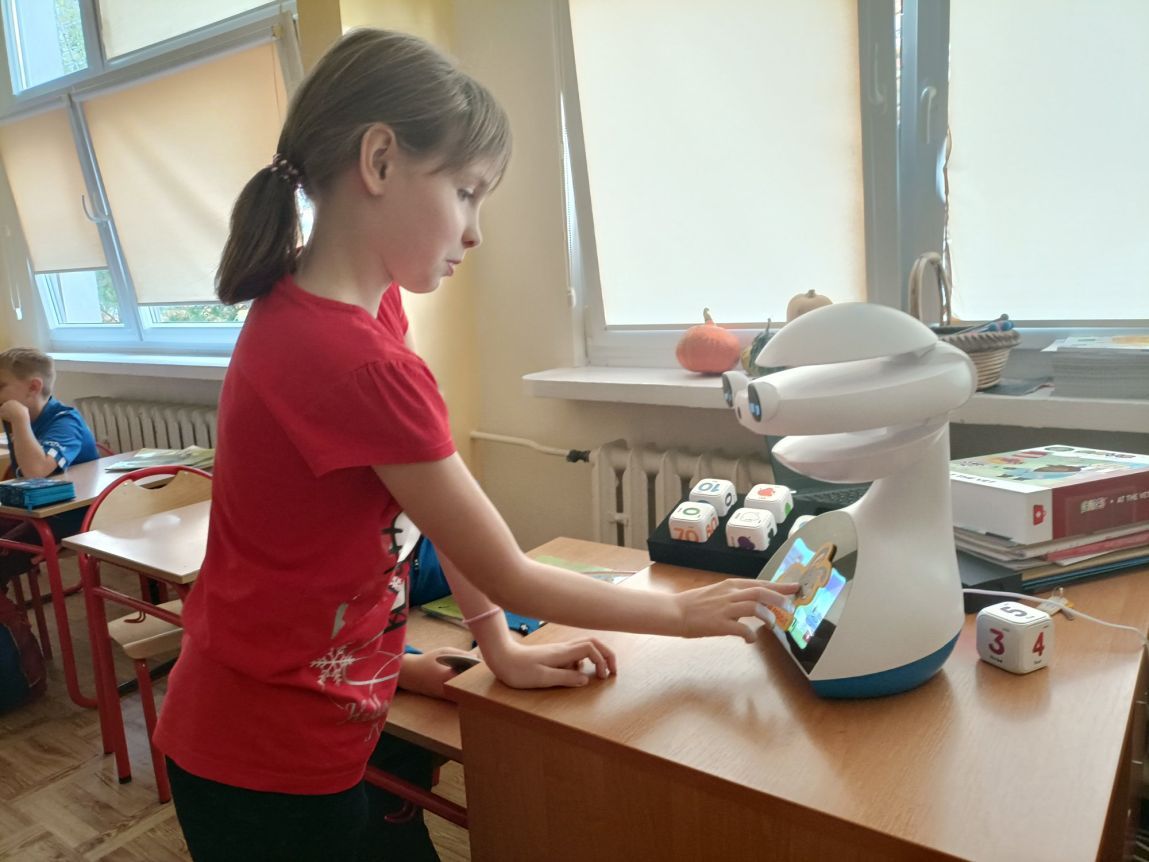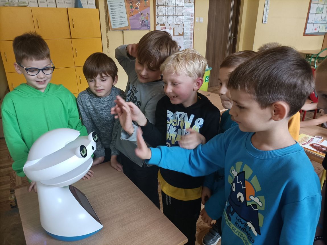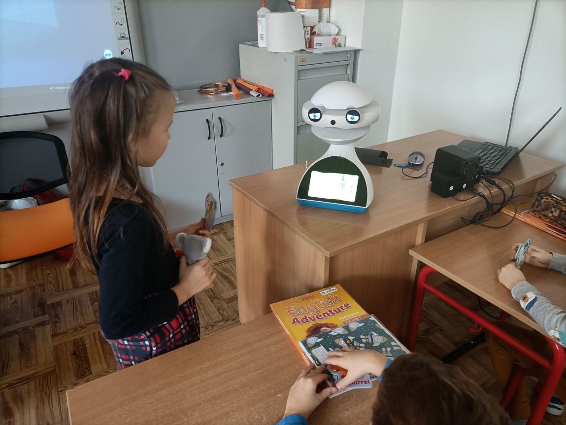 Uczniowie klas 1-3 często na lekcjach języka angielskiego spotykali się z anglojęzycznym robotem edukacyjnym EMYS. Rozwiązywali interaktywne zadania, grali w gry, słuchali piosenek i historyjek oraz uczestniczyli w zabawach ruchowych.