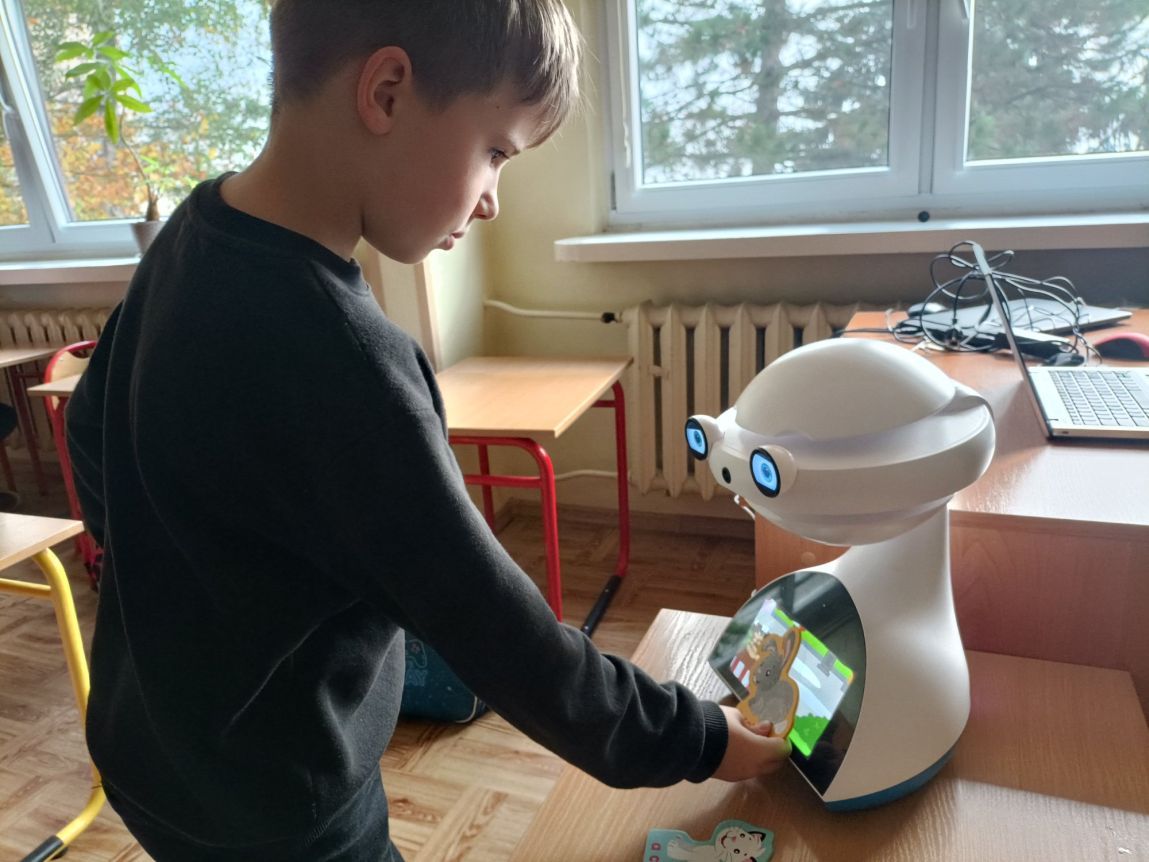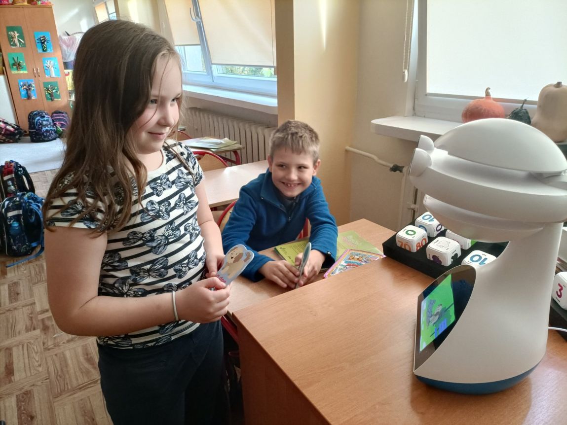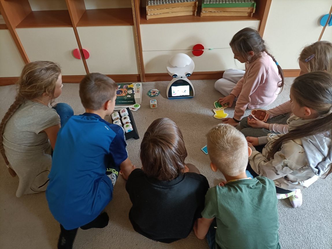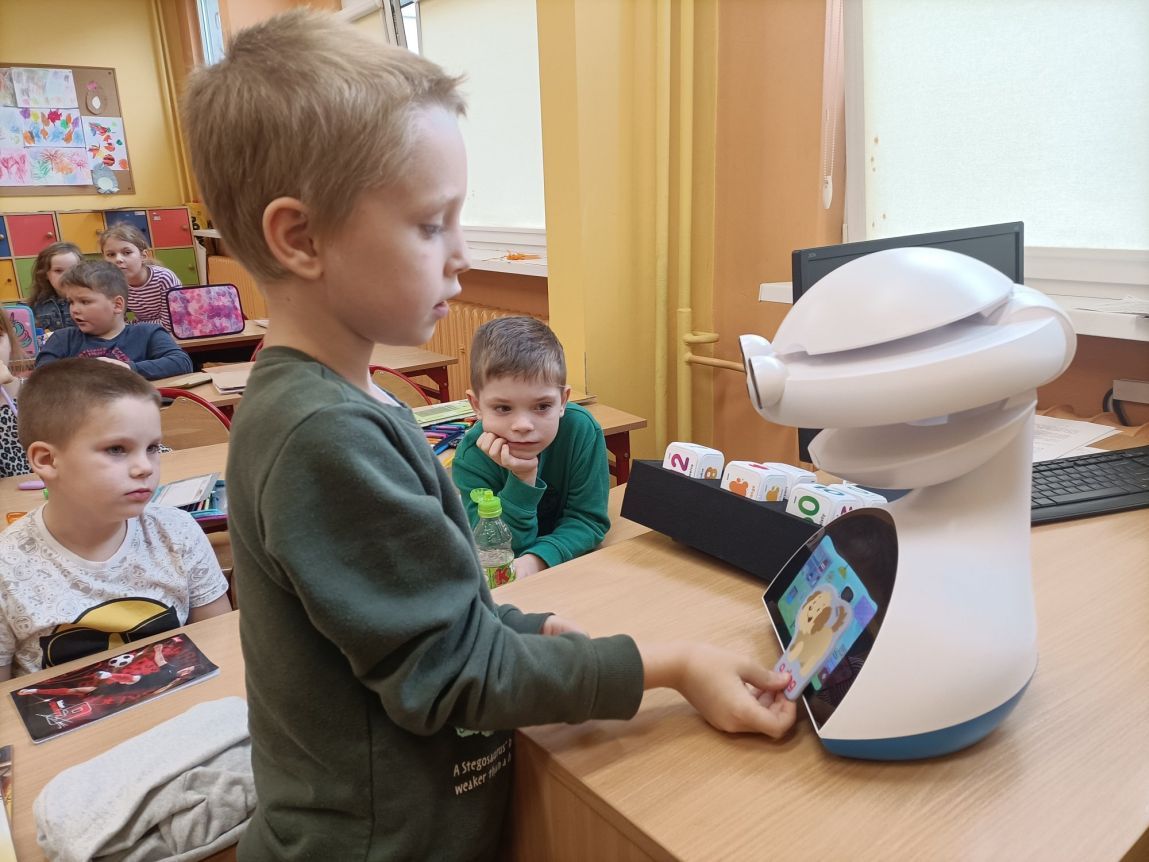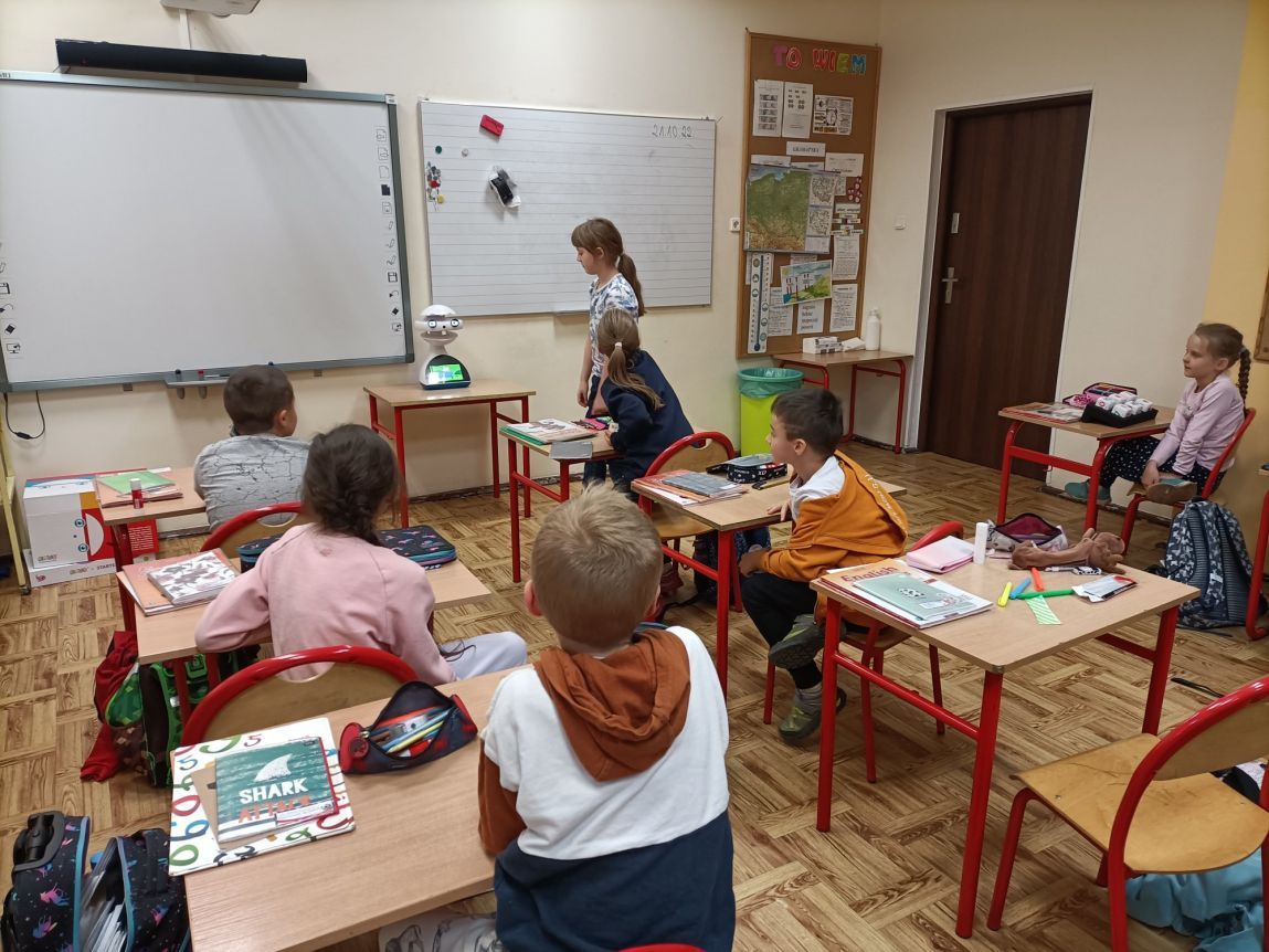 Uczniowie klas 1-3 często na lekcjach języka angielskiego spotykali się z anglojęzycznym robotem edukacyjnym EMYS. Rozwiązywali interaktywne zadania, grali w gry, słuchali piosenek i historyjek oraz uczestniczyli w zabawach ruchowych.