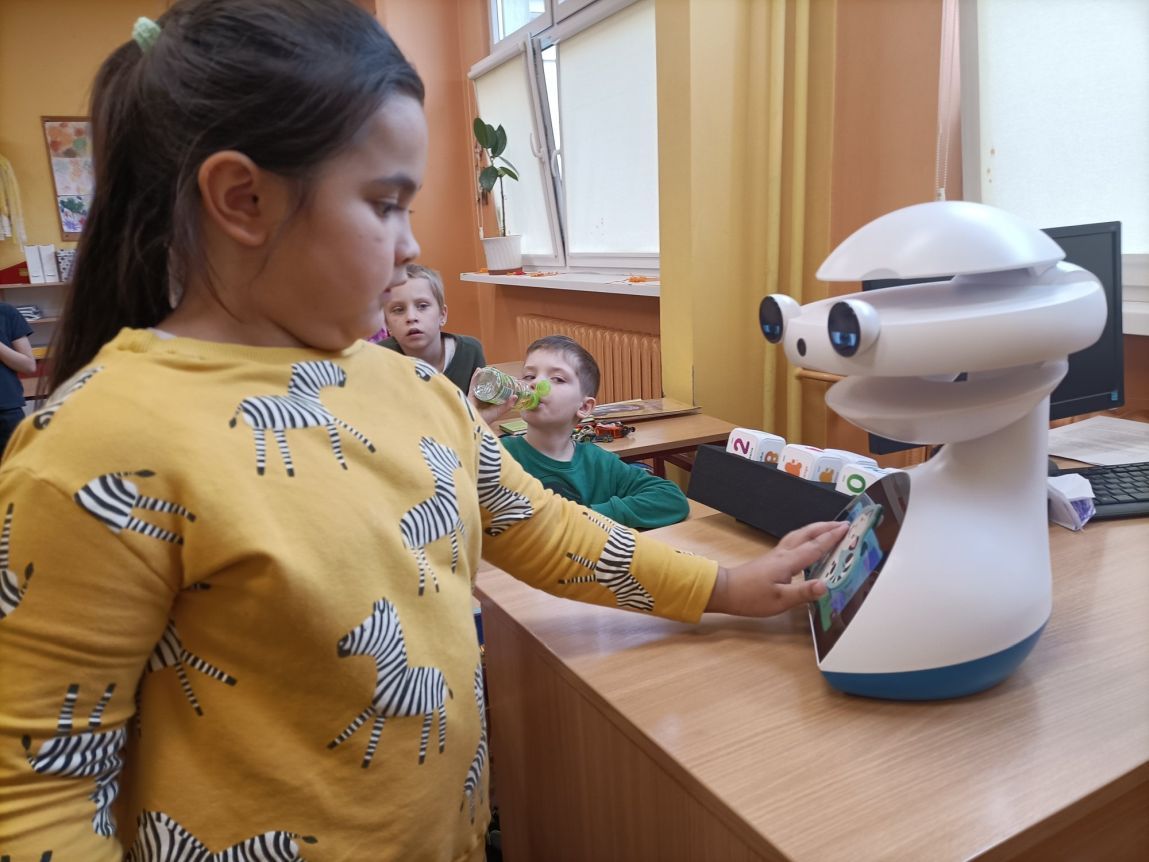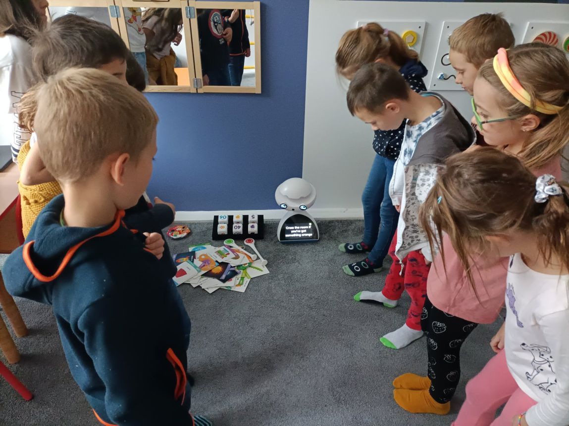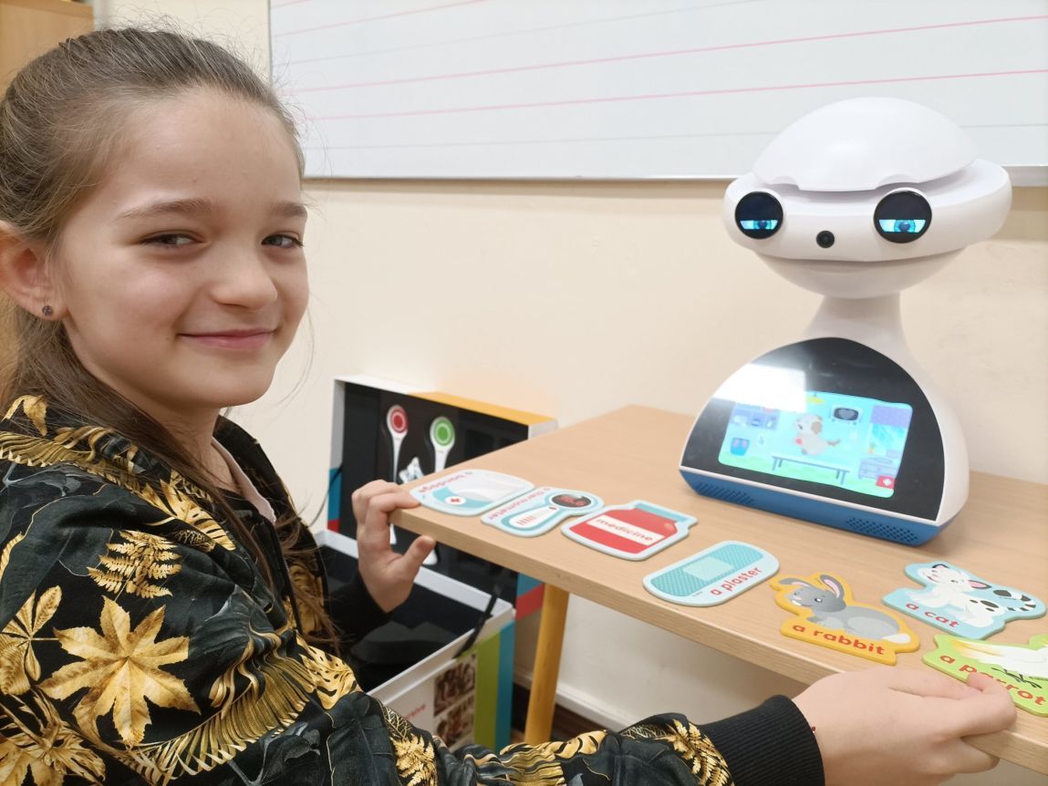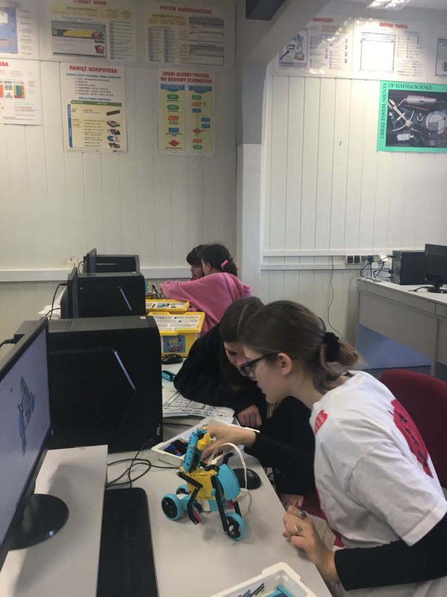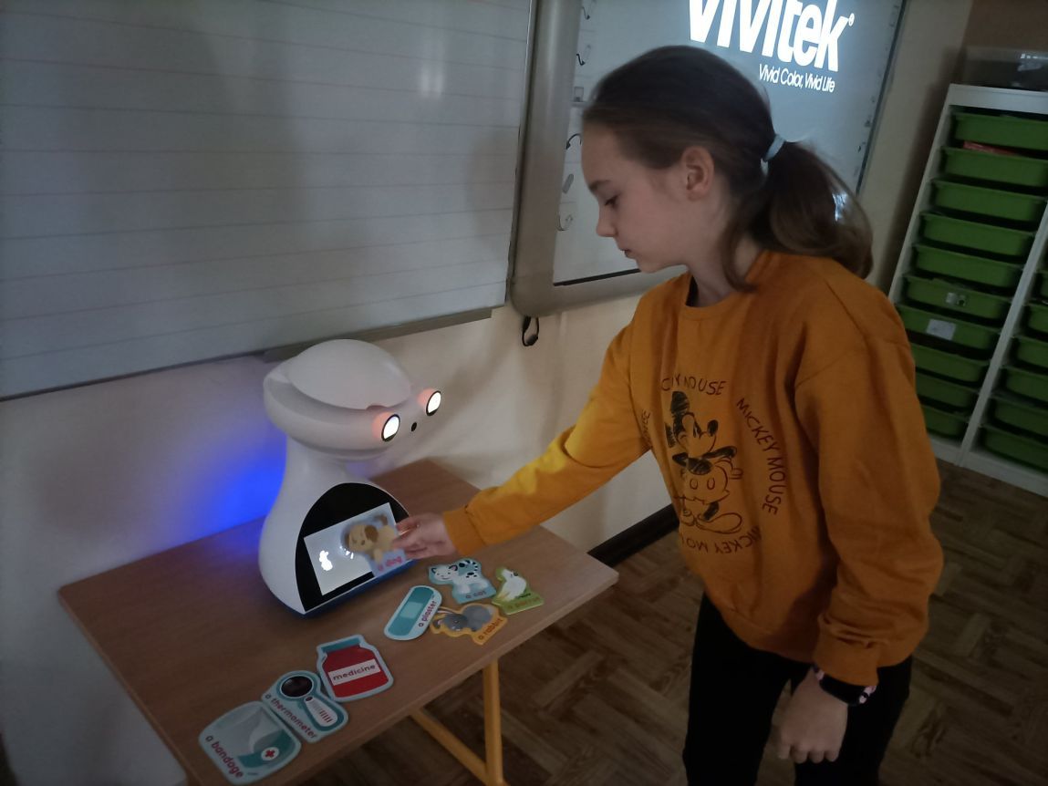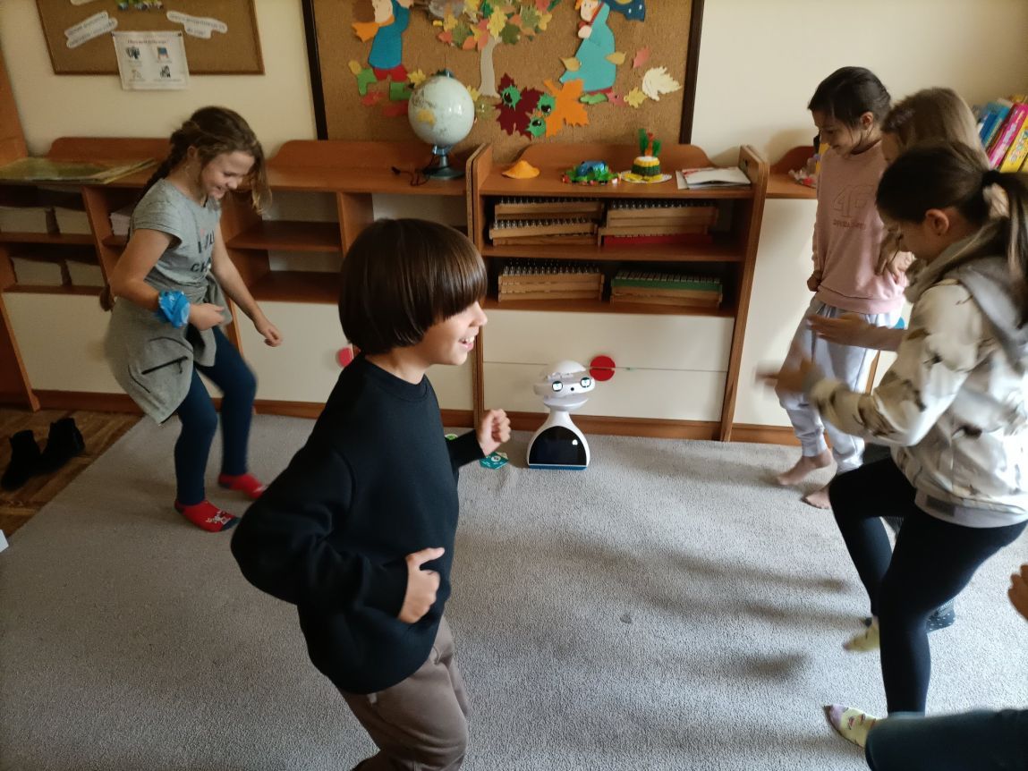 Uczniowie klas 1-3 często na lekcjach języka angielskiego spotykali się z anglojęzycznym robotem edukacyjnym EMYS. Rozwiązywali interaktywne zadania, grali w gry, słuchali piosenek i historyjek oraz uczestniczyli w zabawach ruchowych.