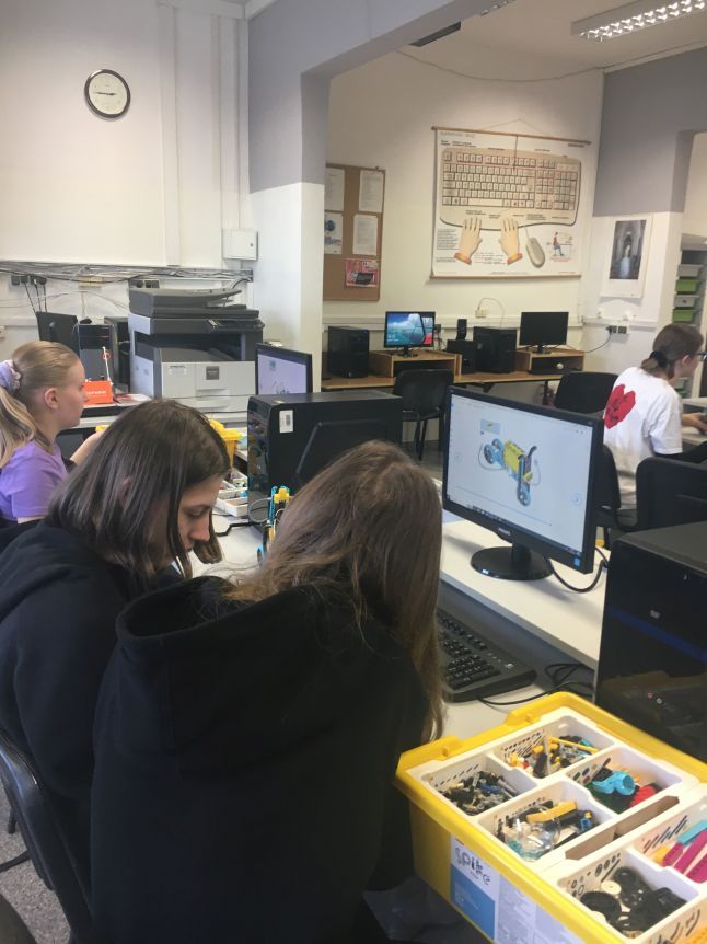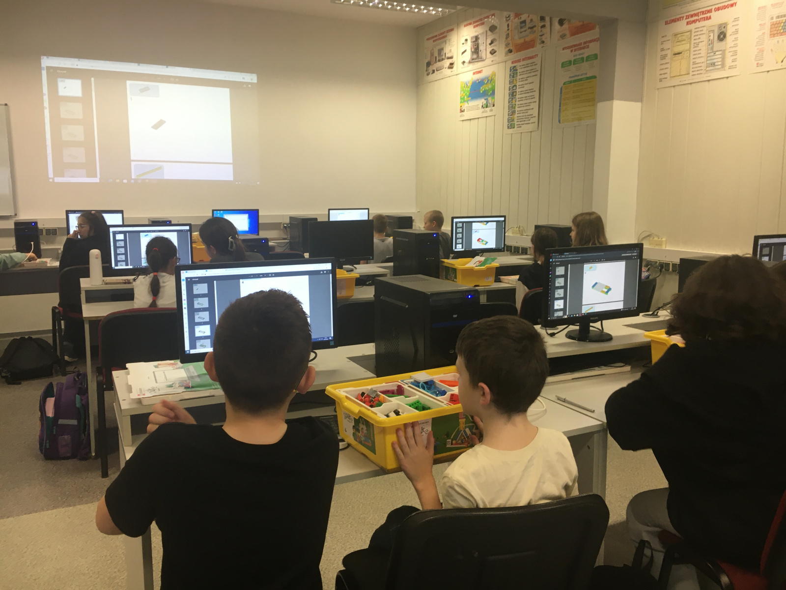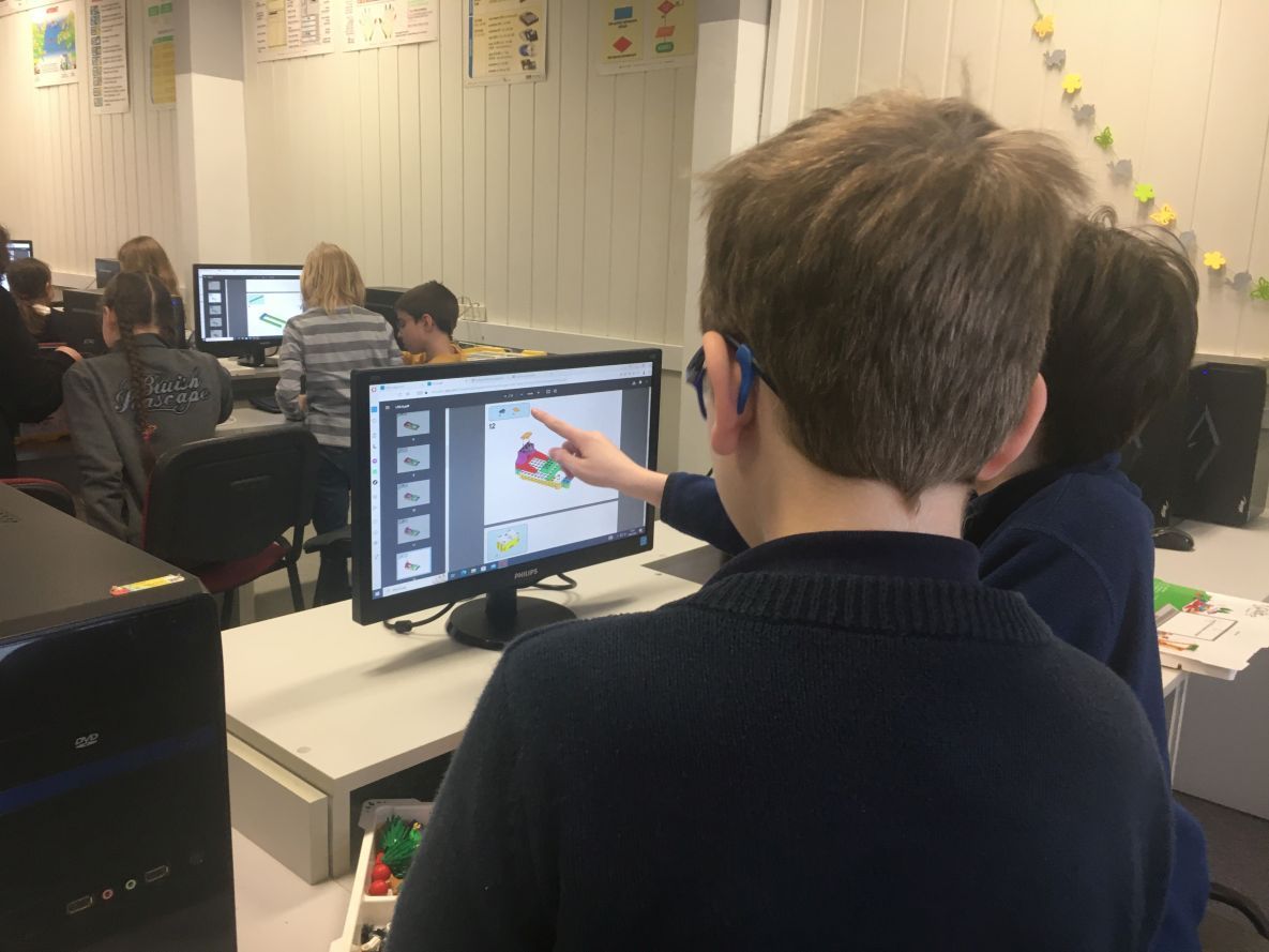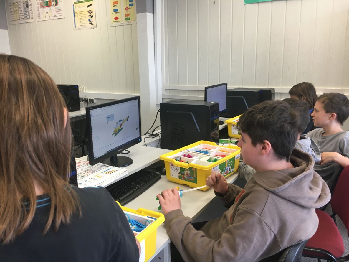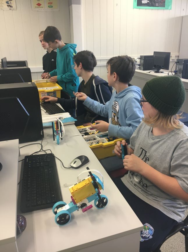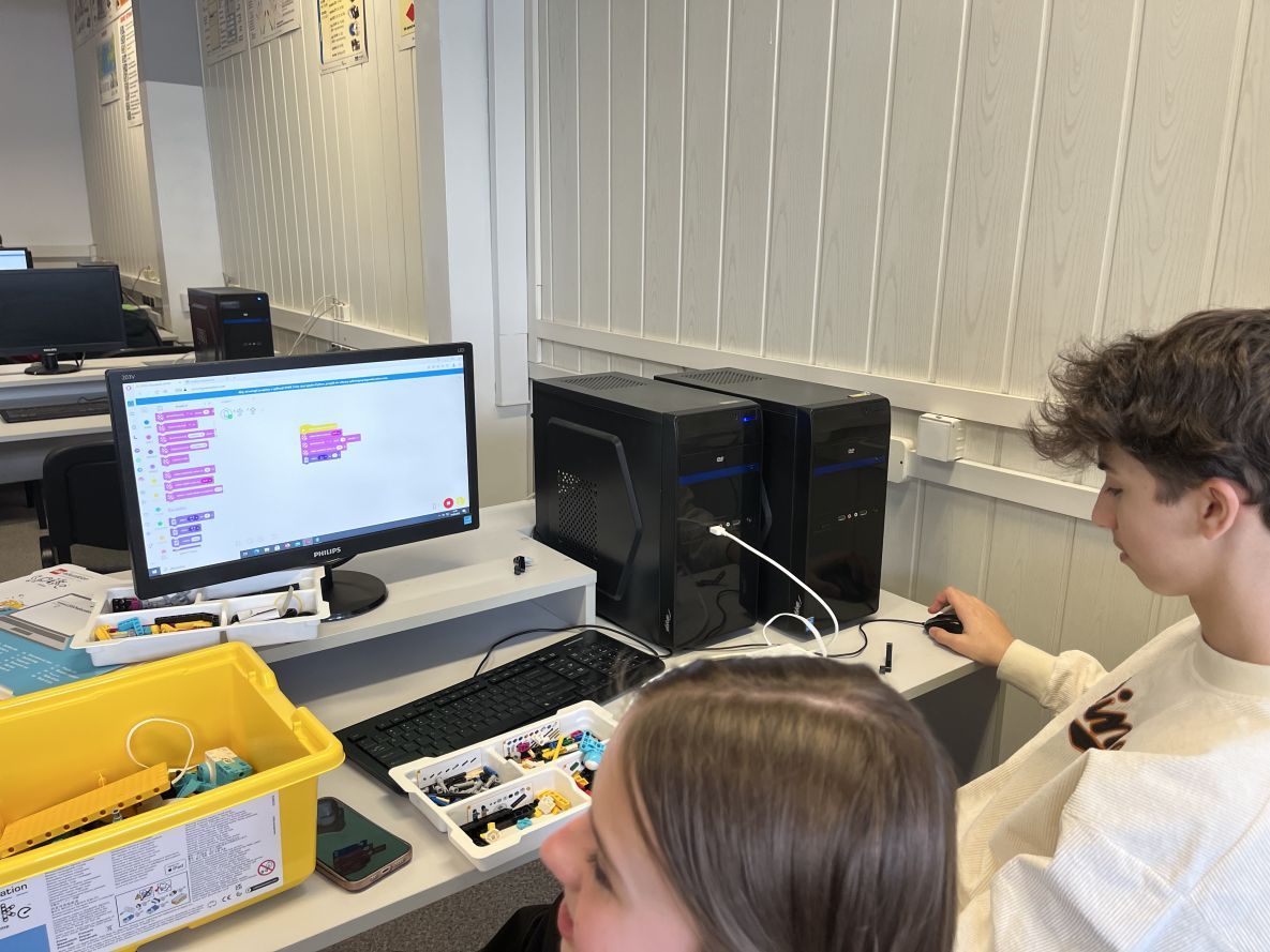 W klasie szóstej na lekcji informatyki chłopcy realizowali dowolne projekty Lego Spike Prime.