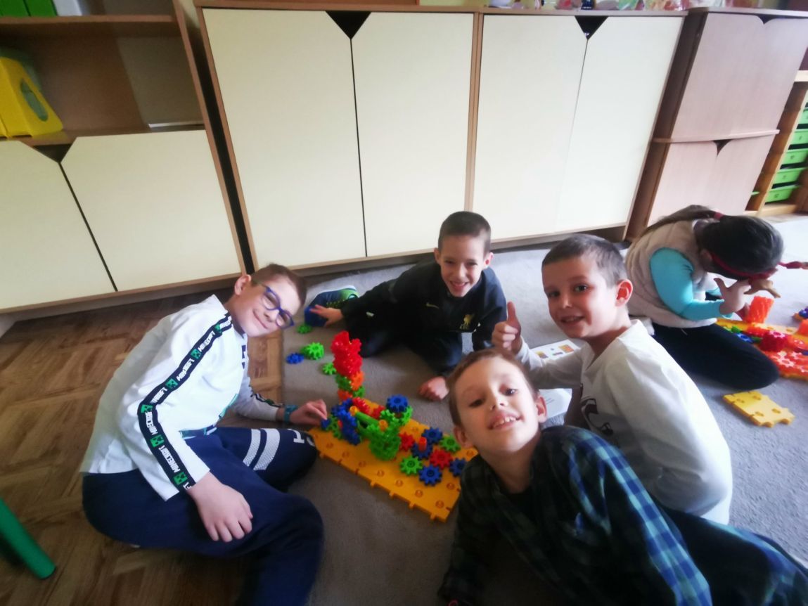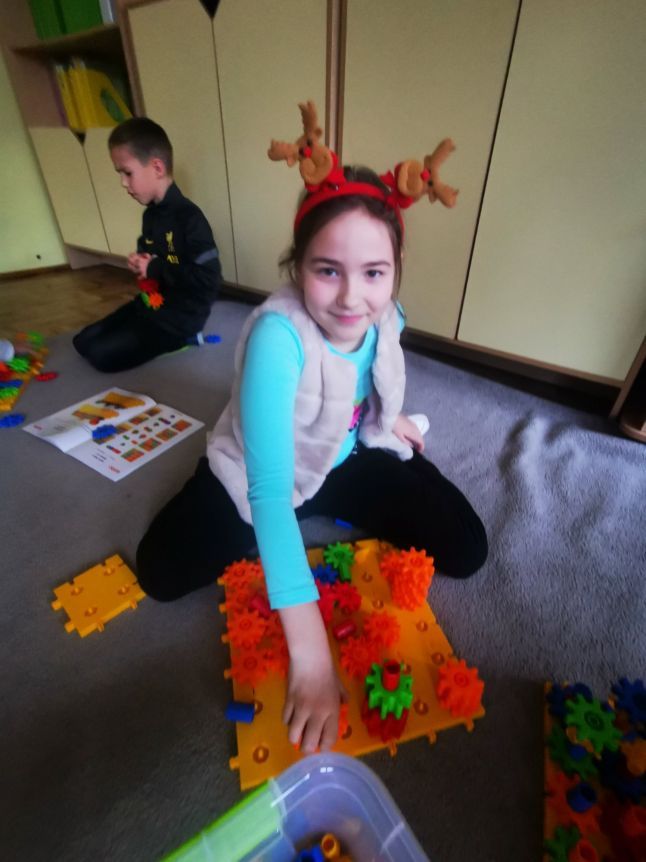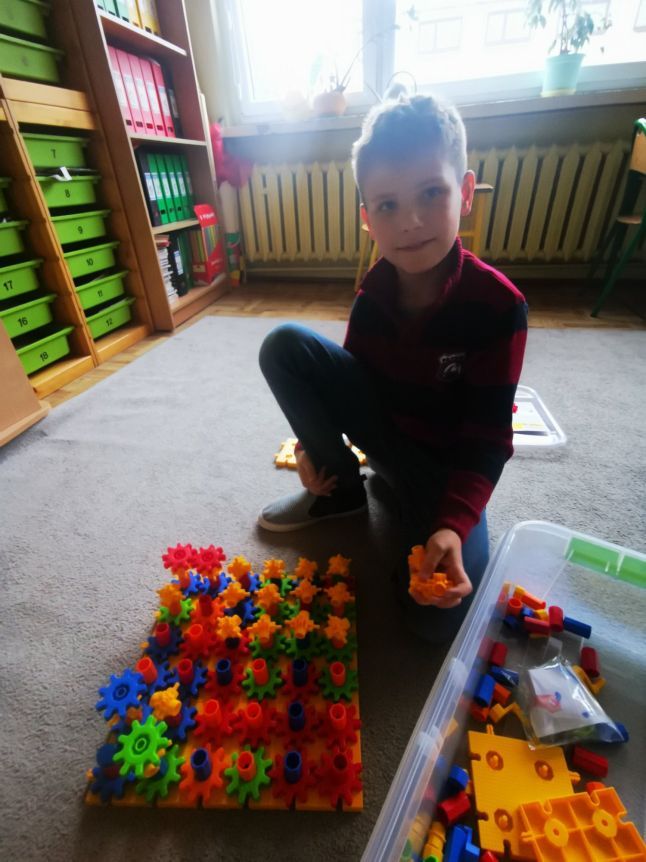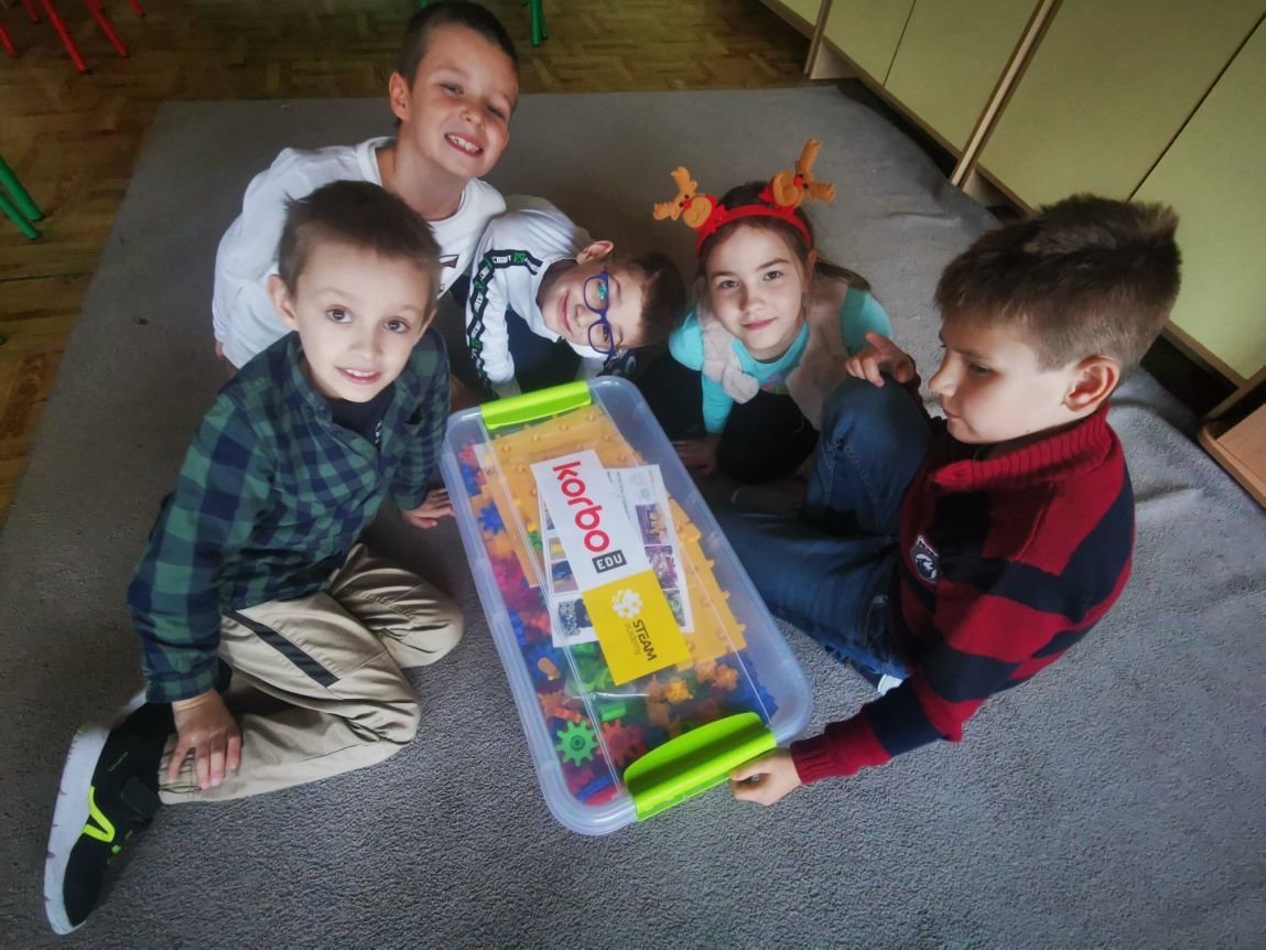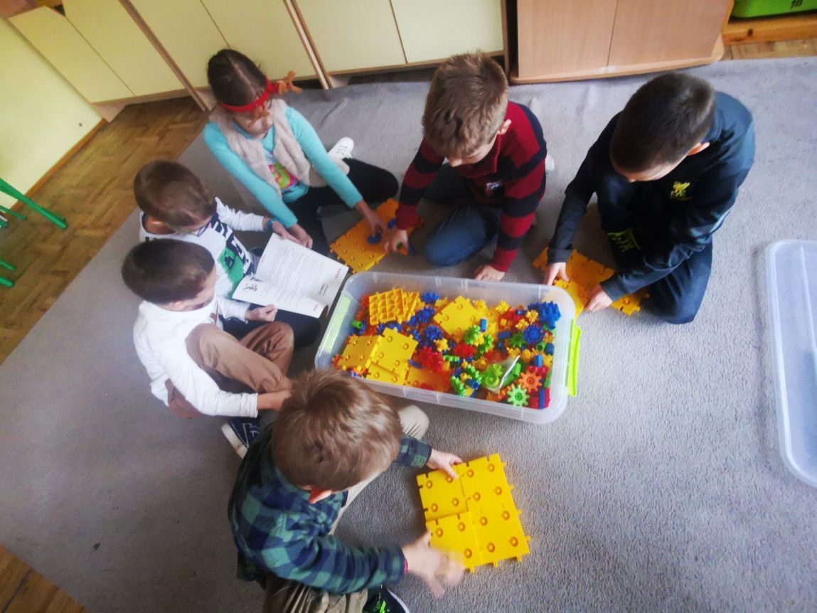 Dzieci z klasy 2b podczas zajęć rozwijających w ramach programu „Laboratoria przyszłości” uczyły się kodowania, planowania, współpracy. Wszystko to w atmosferze zabawy z wykorzystaniem klocków KORBO. Budując, bawiąc się uczniowie mogli odkrywać zasady działania przekładni mechanicznej. Widoczne gołym okiem koła zębate wprawiające w ruch wybrane elementy konstrukcji działają na wyobraźnię. Zabawa i nauka przenikały się nawzajem. Myślę, że jeszcze wrócimy do nich nie raz.