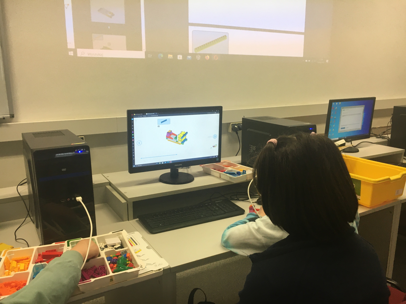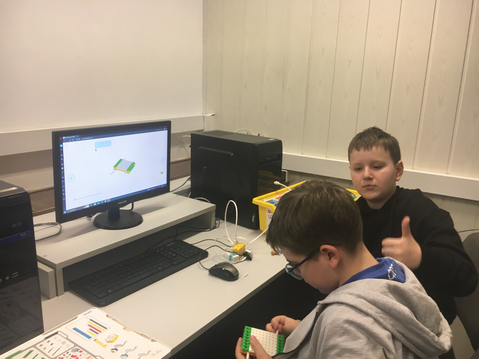 Ponownie konstruowaliśmy śmigający śmigłowiec Lego Spike Essential na lekcji informatyki w klasie 4a.