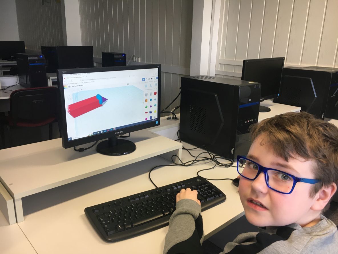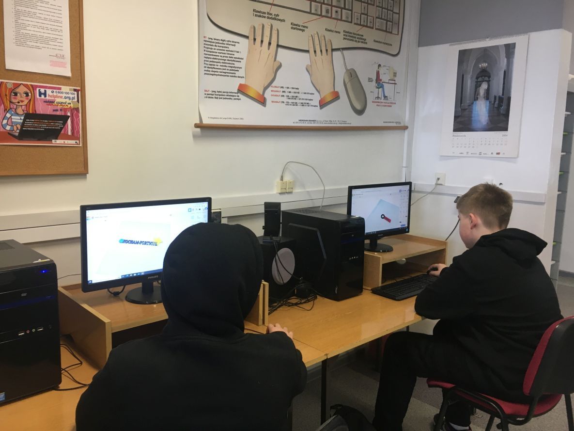 Uczniowie klas ósmych rozpoczęli przygodę z projektowaniem 3D w Tinkercad – darmowym programie do modelowania 3D online, który działa w przeglądarce internetowej. Niektóre z projektów wykonanych przez uczniów zostały wydrukowane na drukarce 3D Makerbot Sketch. Na lekcjach informatyki tworzyliśmy – od projektu do wydruku: breloczki do kluczy z napisem (swoim imieniem), piony szachowe oraz podstawki na smartfony.