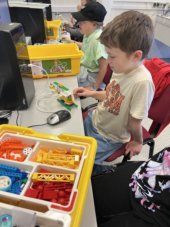 Ilu uczniów na lekcji informatyki – tyle pomysłów na budowanie z klocków Lego Spike Essential. Dlatego na czerwcowych lekcjach każdy uczeń realizował swój dowolny projekt. Było różnorodnie, wesoło i ciekawie.