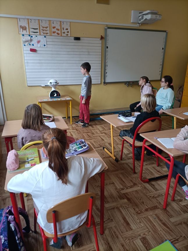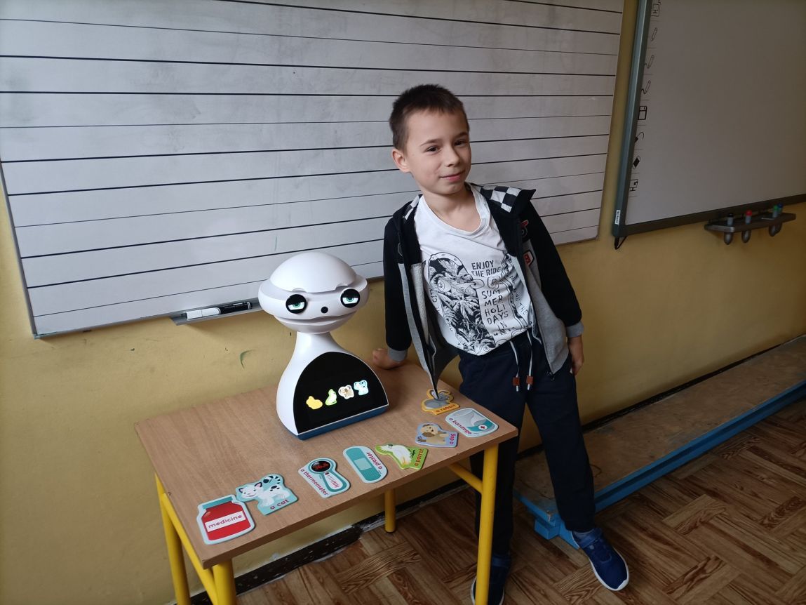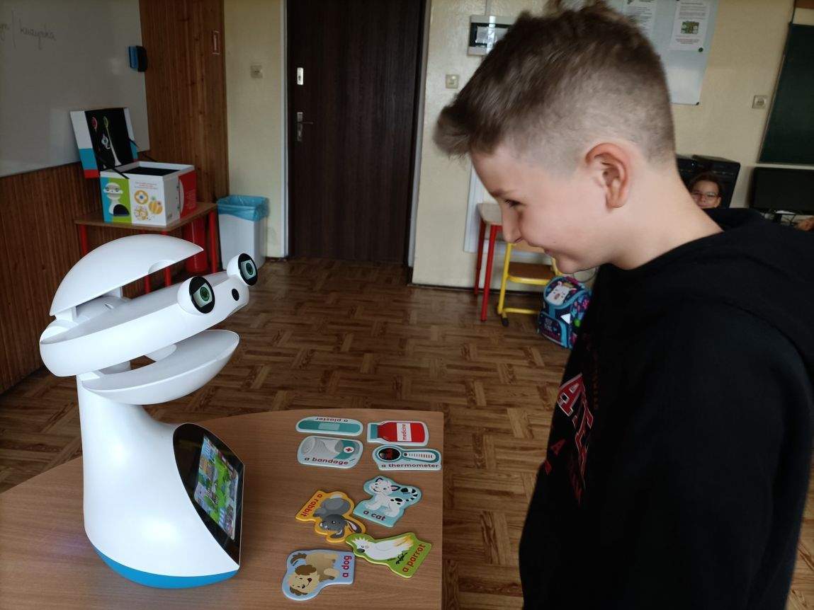 Uczniowie klas 1-3 często na lekcjach języka angielskiego spotykali się z anglojęzycznym robotem edukacyjnym EMYS. Rozwiązywali interaktywne zadania, grali w gry, słuchali piosenek i historyjek oraz uczestniczyli w zabawach ruchowych.