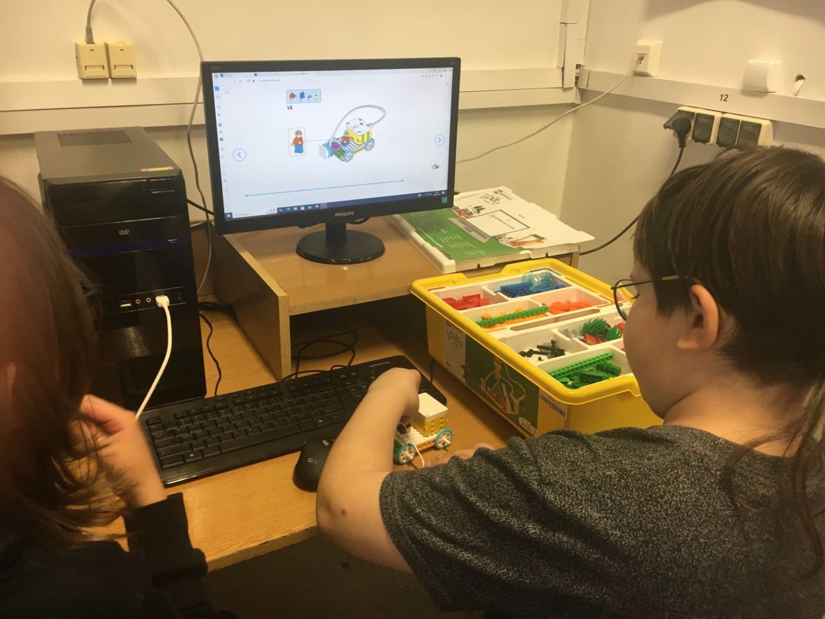 Na lekcjach informatyki w klasach czwartych i piątych zorganizowaliśmy wyścigi skoczków Lego Spike Prime. Po zbudowaniu skoczka według instrukcji, wprawieniu go w ruch i wypróbowaniu jego możliwości w wyścigu, nastąpiło tworzenie prototypu nowych odnóży, aby skoczek posuwał się naprzód szybciej.