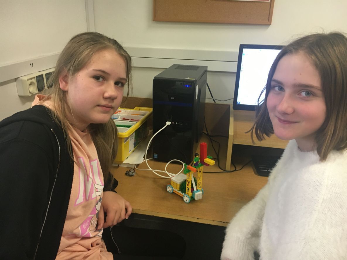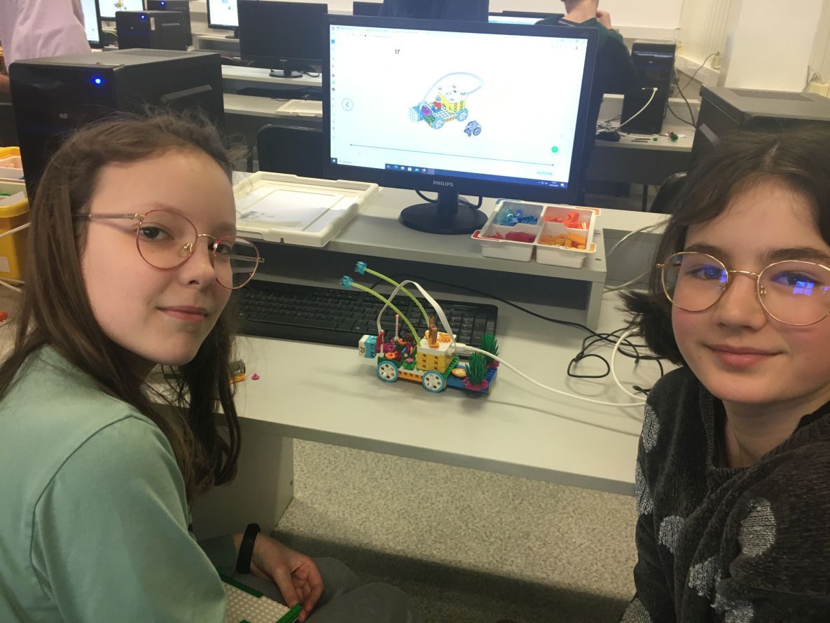 W ramach przygotowań do nadchodzącego Festiwalu Nauki i planowanego pokazu robotów, uczniowie klasy 7b oraz uczennice klasy 8d konstruowali na lekcjach informatyki inteligentny rower z zestawów Lego Spike Prime.